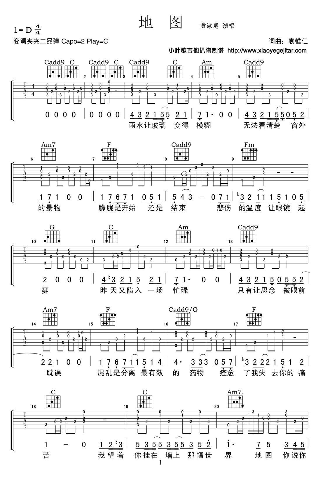 地图吉他谱 - 黄淑惠 - 吉他弹唱谱