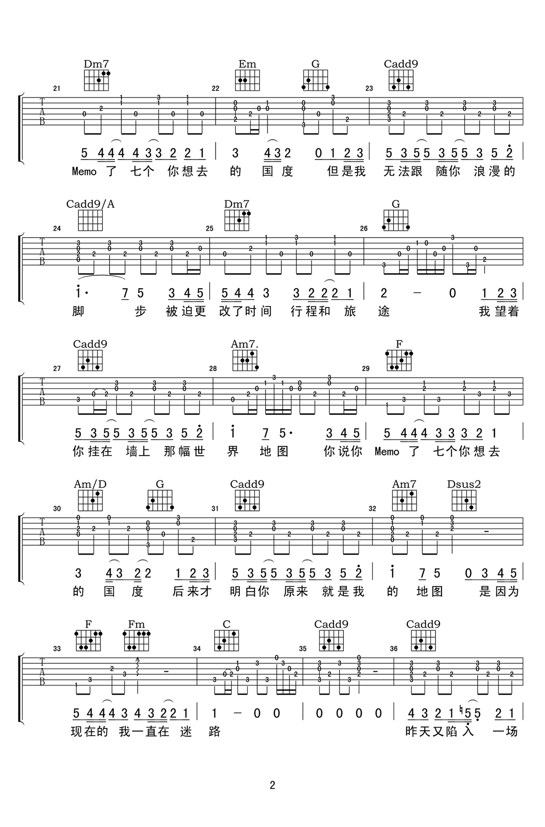 当前位置:琴谱网>吉他弹唱>地图