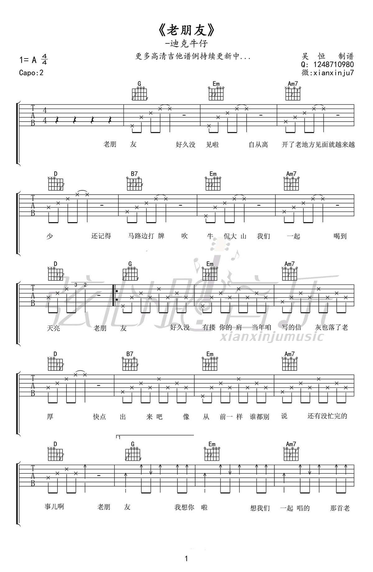 老朋友吉他谱 - 迪克牛仔 - 吉他弹唱谱