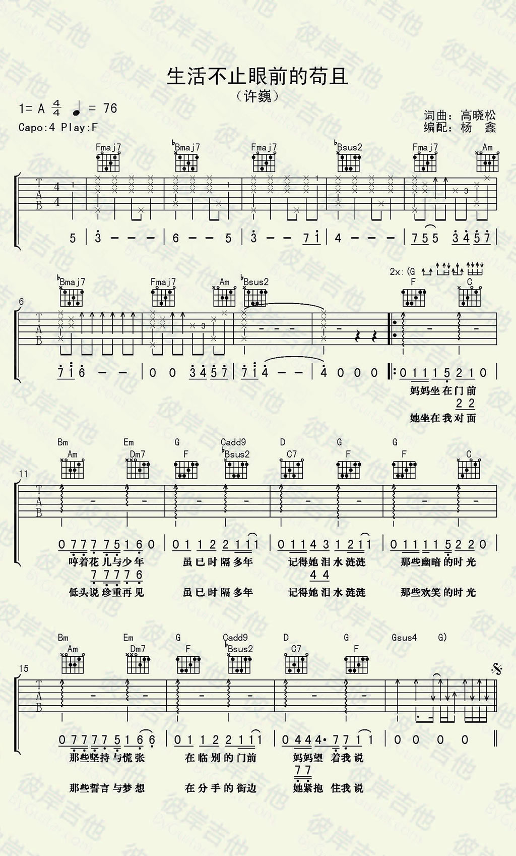 生活不止眼前的苟且吉他谱 - 许巍 - 吉他弹唱谱