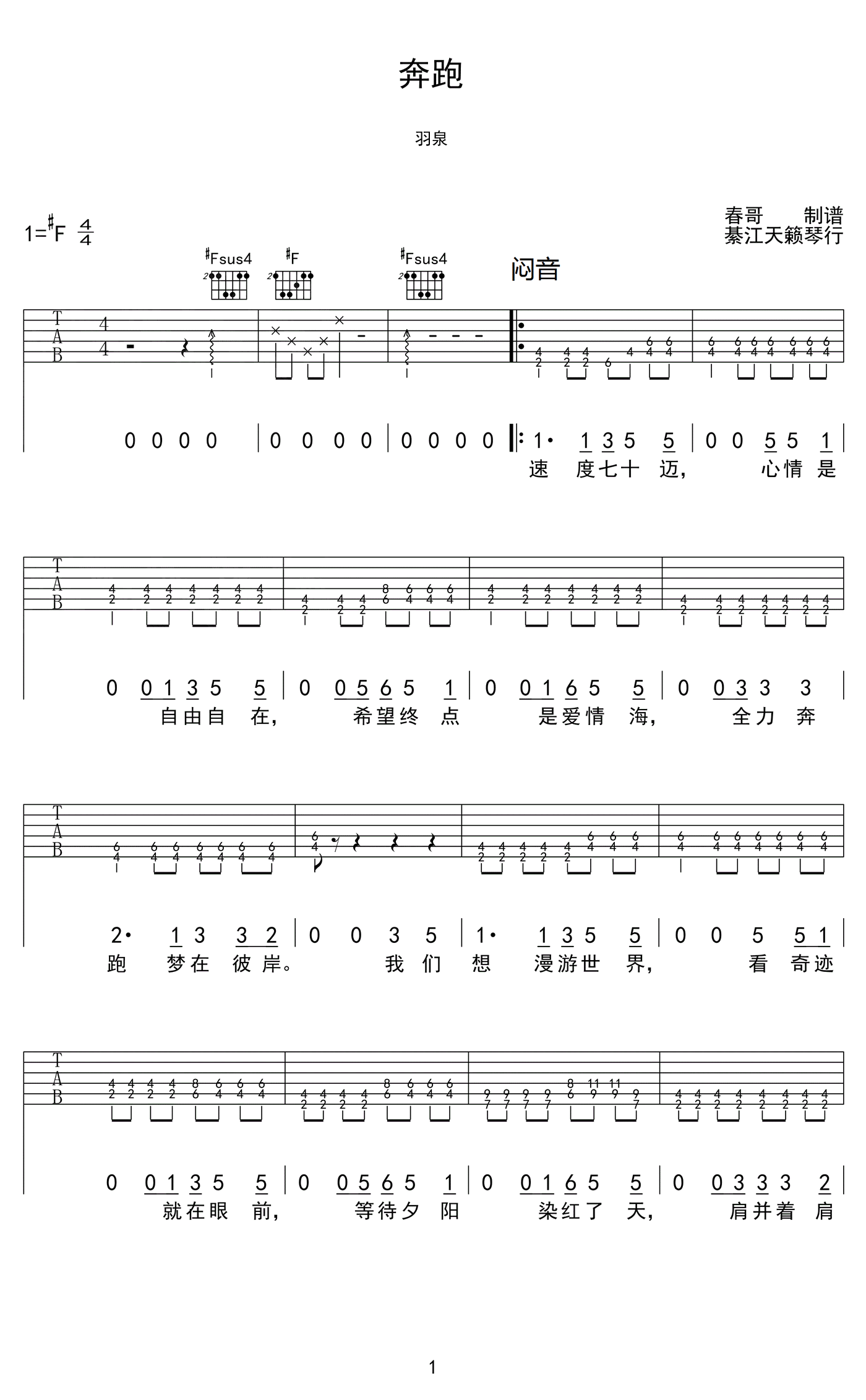 奔跑吉他谱 - 羽泉 - 吉他弹唱谱