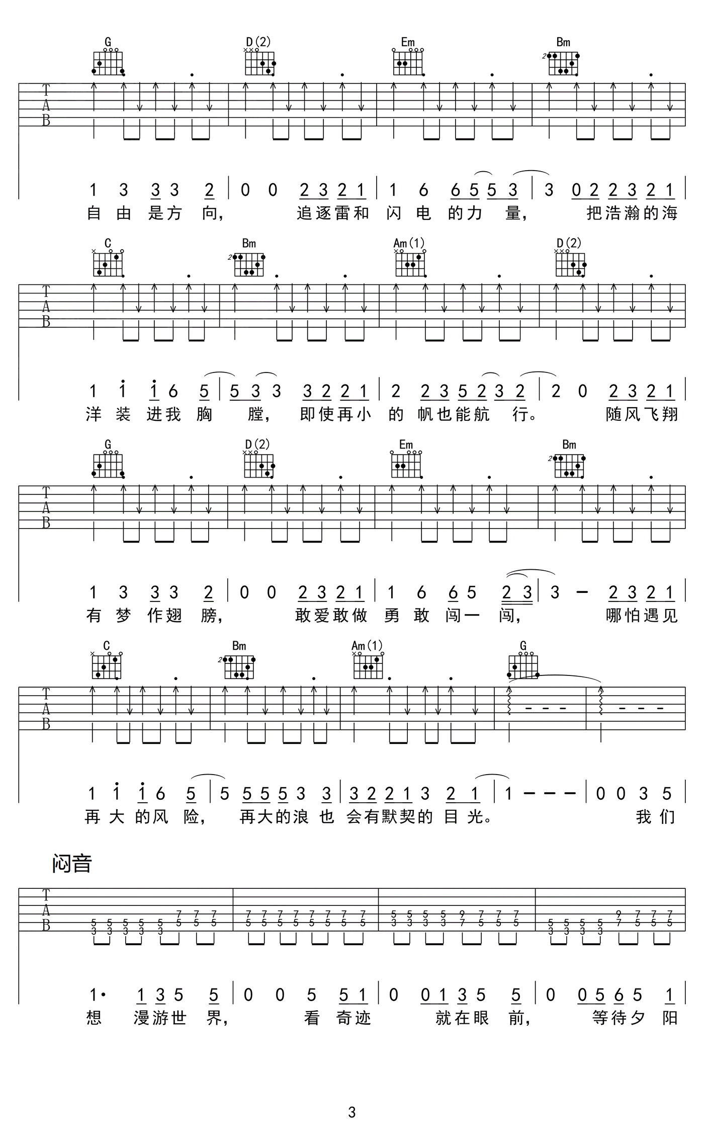 曲谱介绍: 羽泉奔跑吉他谱,六线谱完整编配,图片谱例共四张。奔跑吉他弹唱谱,这首羽泉的《奔跑》一开始便唱出了行车的享受。“速度70迈,心情是自由自在……”歌词也为我们描绘了一幅雄心壮志的画面:“追逐雷和闪电的力量,把浩瀚的海洋装进我胸膛,即使再小的帆也能远航……”一首歌、一种力量、一种信仰,那就是自由、奋进、勇敢。