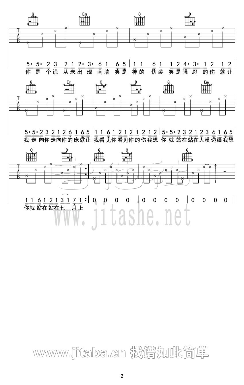 当前位置:琴谱网>吉他弹唱>七月上