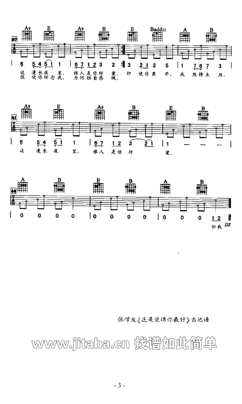 还是觉得你最好吉他谱 - 张学友 - 吉他弹唱谱