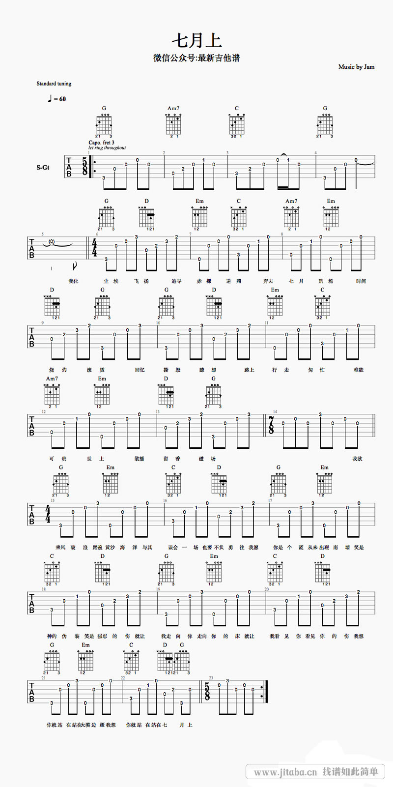 七月上吉他谱 - Jam - 吉他弹唱谱