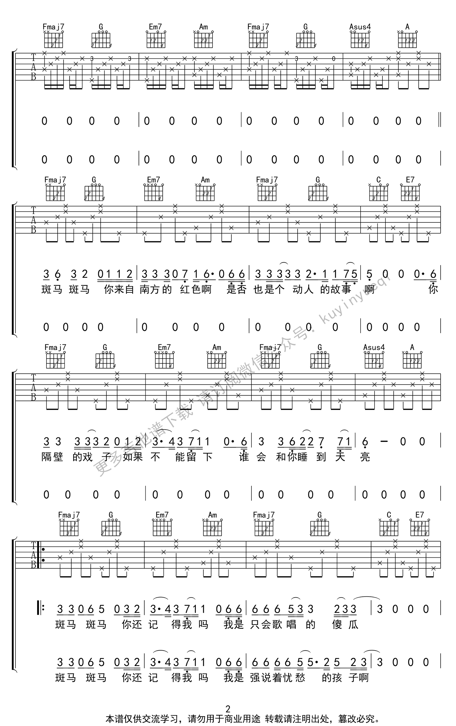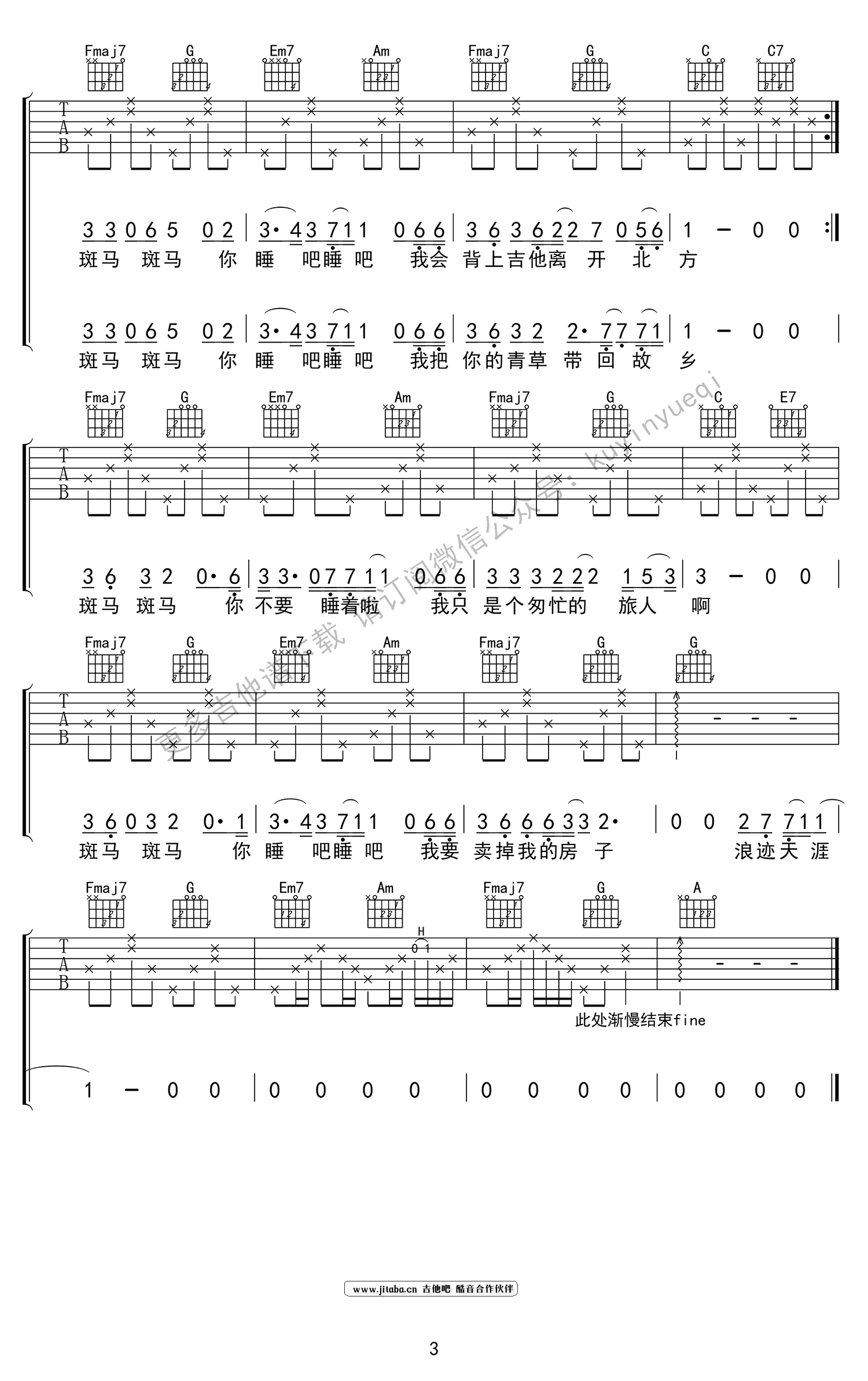 当前位置:琴谱网>吉他弹唱>斑马斑马