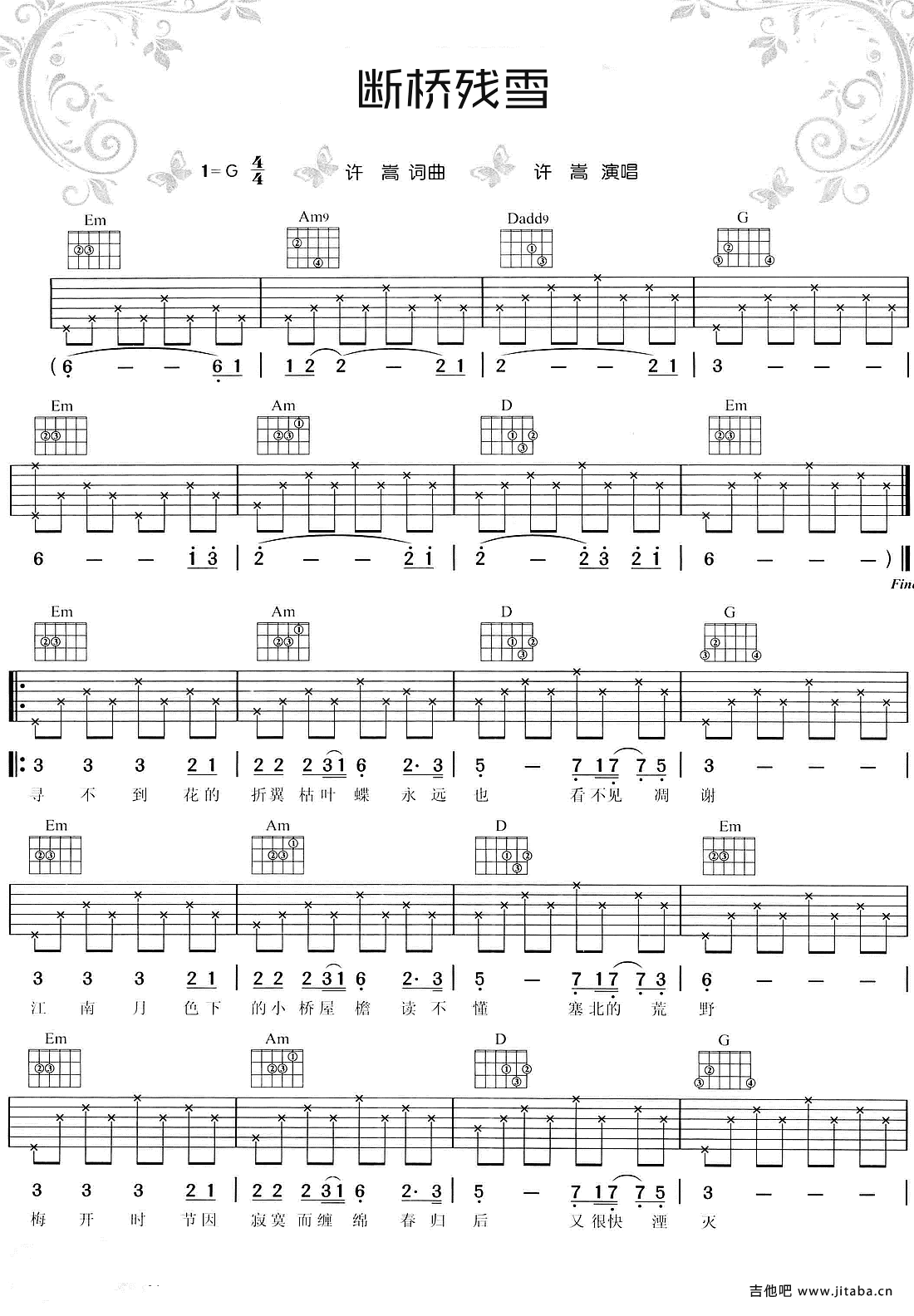 断桥残雪吉他谱 - 许嵩 - 吉他弹唱谱
