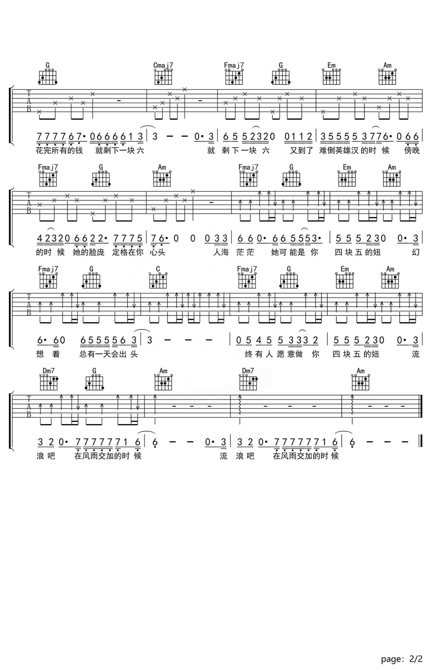 当前位置:琴谱网>吉他弹唱>四块五