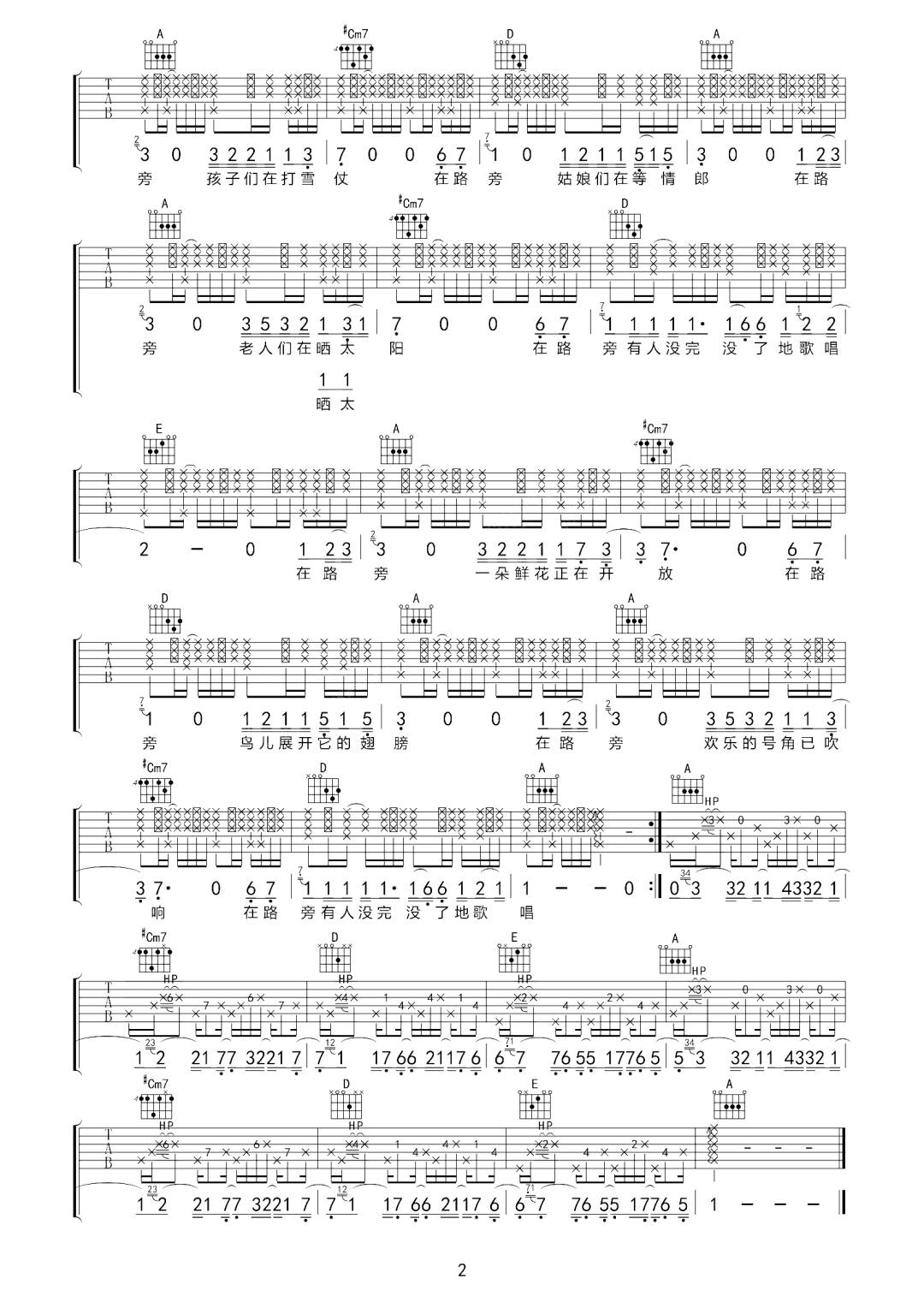 曲谱介绍: 吉他谱介绍:在路旁吉他谱,钟立风演唱的一首歌曲,4/4拍的节奏,这首歌曲的原调为A调,这里曲谱采用了A调指法进行编配,演唱时可不夹变调夹,曲谱由琴谱网更新上传,共2张高清图片弹唱吉他谱例,曲谱来源于网络转载,编配制谱者暂不详。这是一首几乎不加杂质的灵魂之曲,以画面感极强的词语,描述了人们生活中应有的清澈与和谐,他向我们展示了另一种音乐力量的魅力,平静、宽和的力量,融化了人们内心的孤寂、冷漠,打开了人们的视野。
