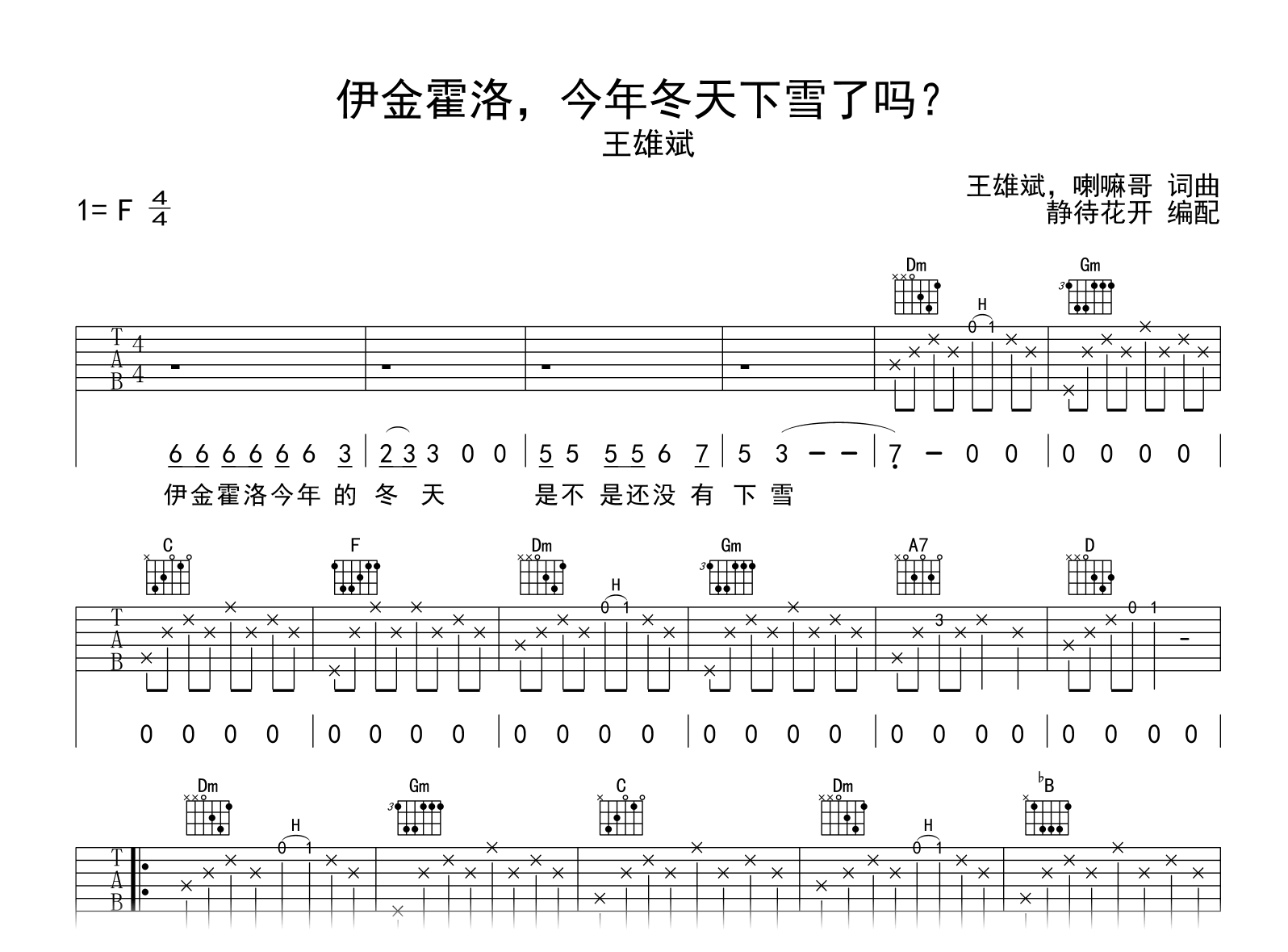 伊金霍洛,今年冬天下雪了吗吉他谱 - 王雄斌 - 吉他弹唱谱