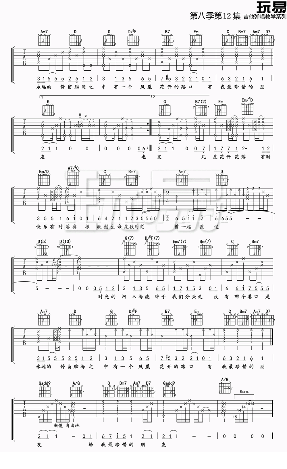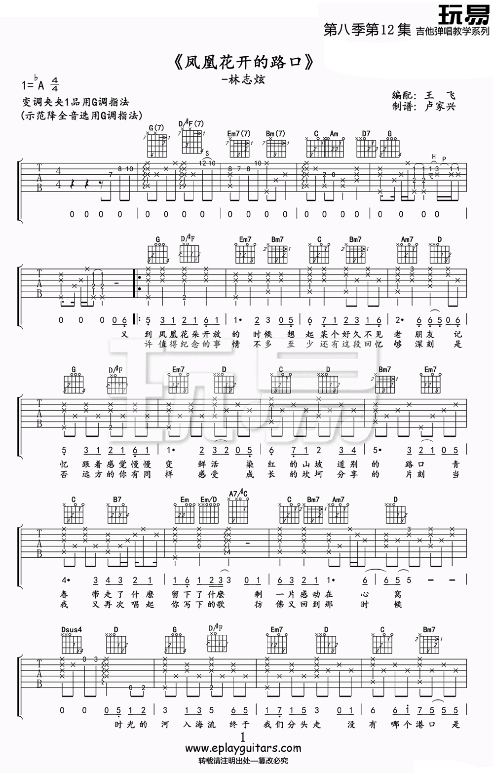 曲谱介绍: 林志炫《凤凰花开的路口》吉他谱,原调bA,变调夹夹1品,用G调指法,凤凰花开的路口吉他六线谱,图片谱高清版,王飞编配卢家兴制谱。淡淡的美丽,悠悠的回忆,一首毕业伤感歌曲,展现了同学们告别彼此,向着新的方向奔跑的画面,伴随着对未来的渴望。时光轻浅,流水匆匆,岁月中我们终会成长。