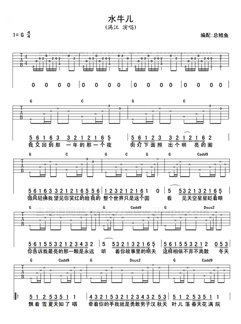水牛儿吉他谱 - 满江 - 吉他弹唱谱