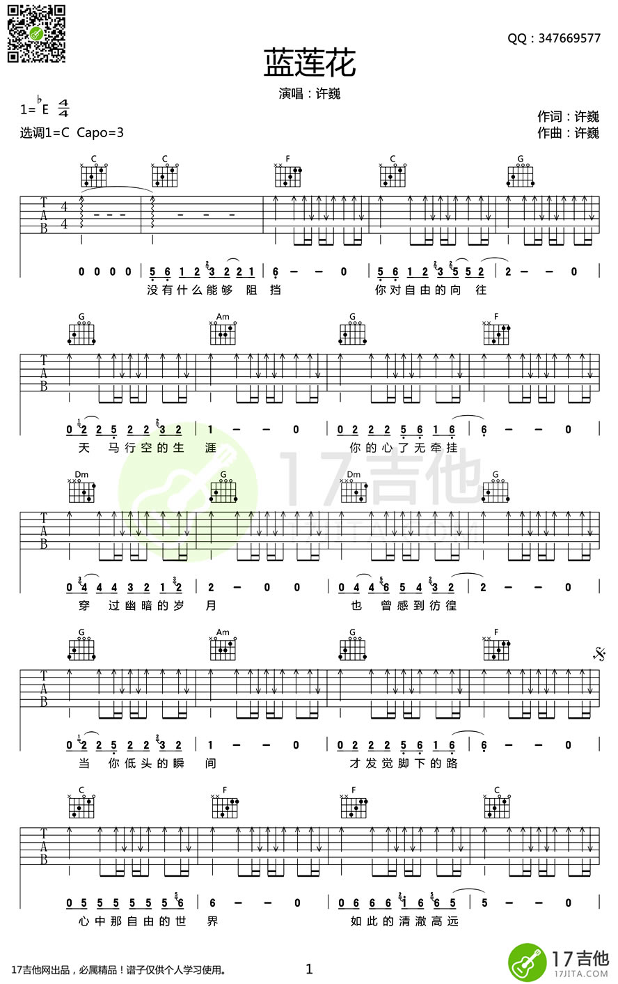 蓝莲花吉他谱 - 许巍 - C调吉他弹唱谱