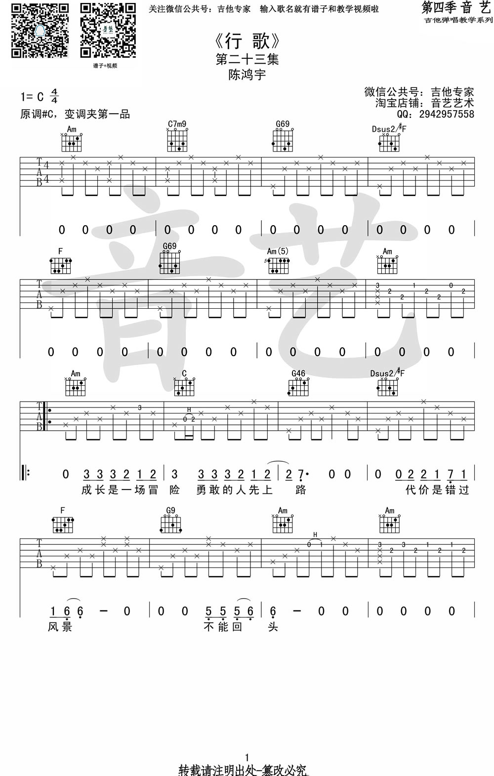 琴谱网为您精心推荐 行歌 高清图谱