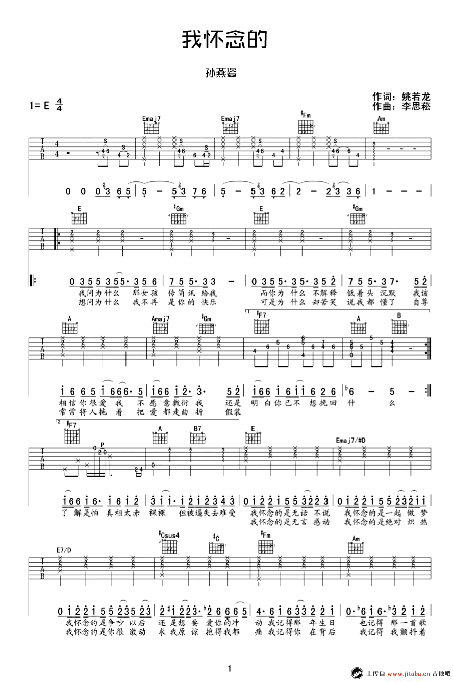 曲谱介绍: 我怀念的吉他谱,孙燕姿经典歌曲,我怀念的六线谱。《梦想的声音》节目,林俊杰改编翻唱这首《我怀念的》,好听的live现场版本,不愧是行走的CD,能将每首歌都唱出一个新的高度,俘获了太多人的眼泪。