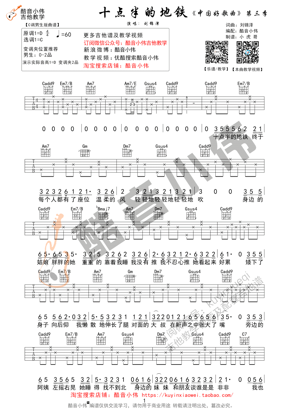 曲谱介绍: 刘锦泽《十点半的地铁》吉他谱,C调指法,变调夹夹第二品。中国好歌曲刘锦泽的这首原创作品,一首安静、疲惫又温暖的歌,朴实无华,曲调舒缓悠扬,一如多年不见的朋友,聊起如今的生活,有点累,有点期待,可是终究你还是要一个人去面对生活。每一个地铁里奔波的身影,都有着自己的故事和前行的方向。无论是失意得意、快乐悲伤,谁又能真正的能够停下来?《十点半的地铁》送给每一个奔波在生活里的人。感谢酷音小伟吉他谱编配并带来弹唱教学视频。