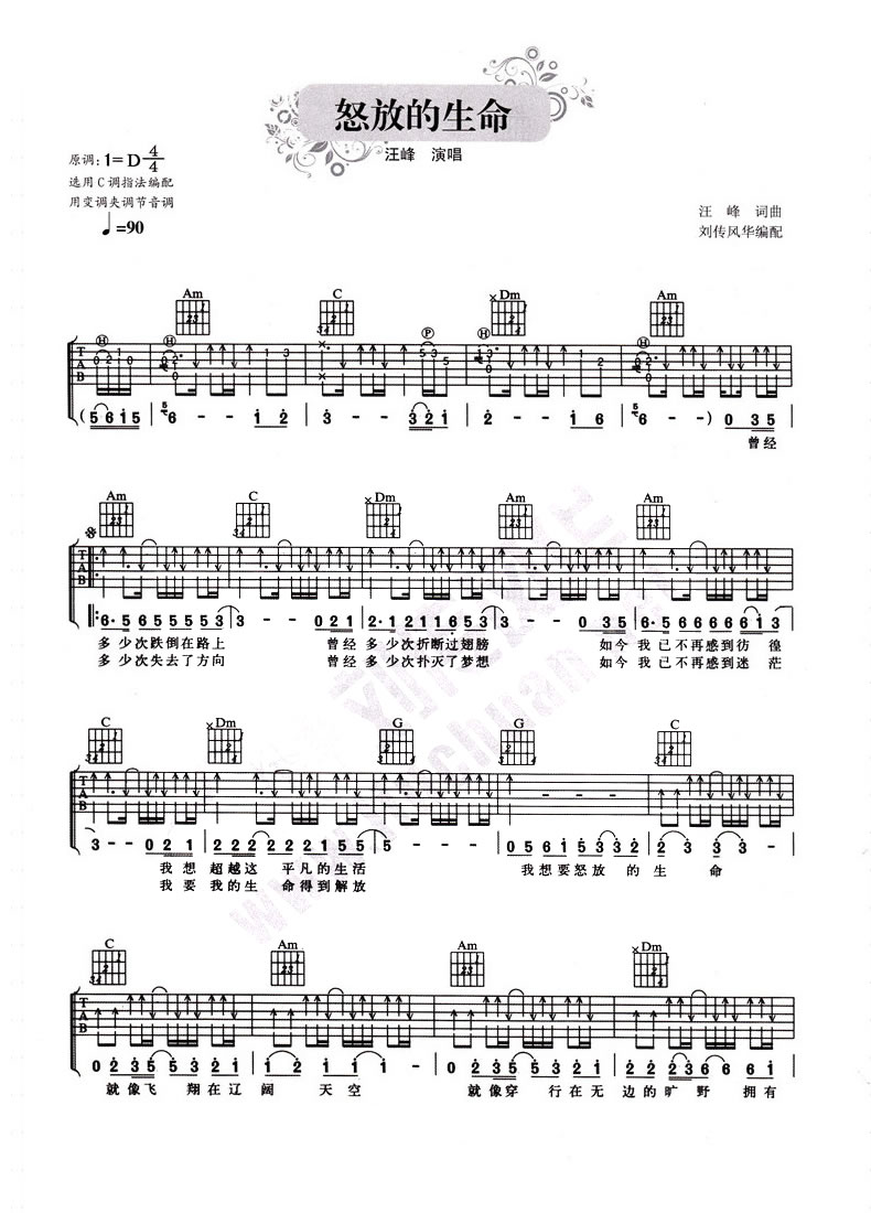 怒放的生命吉他谱 - 汪峰 - C调吉他弹唱谱