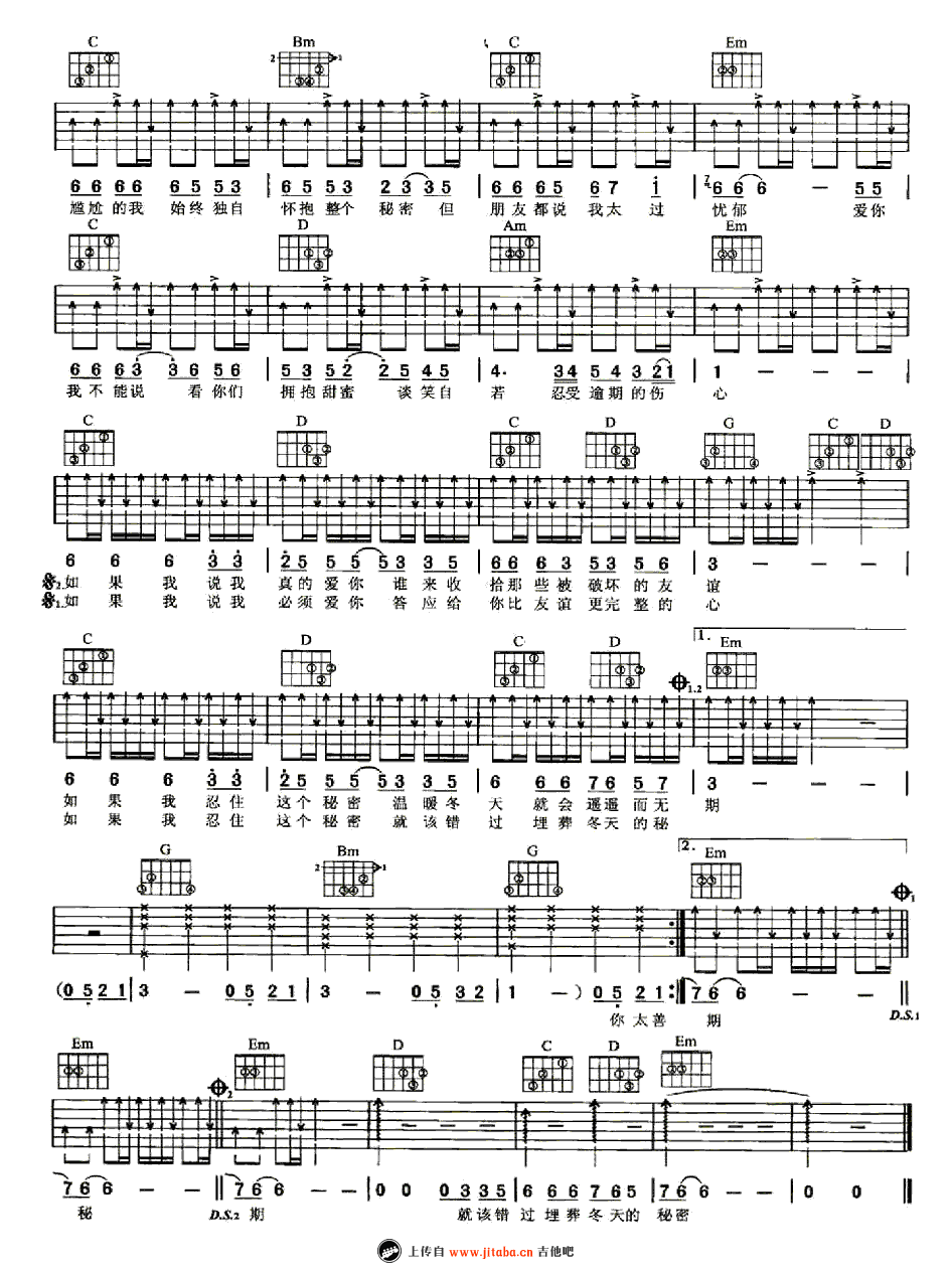 当前位置:琴谱网>吉他弹唱>冬天的秘密