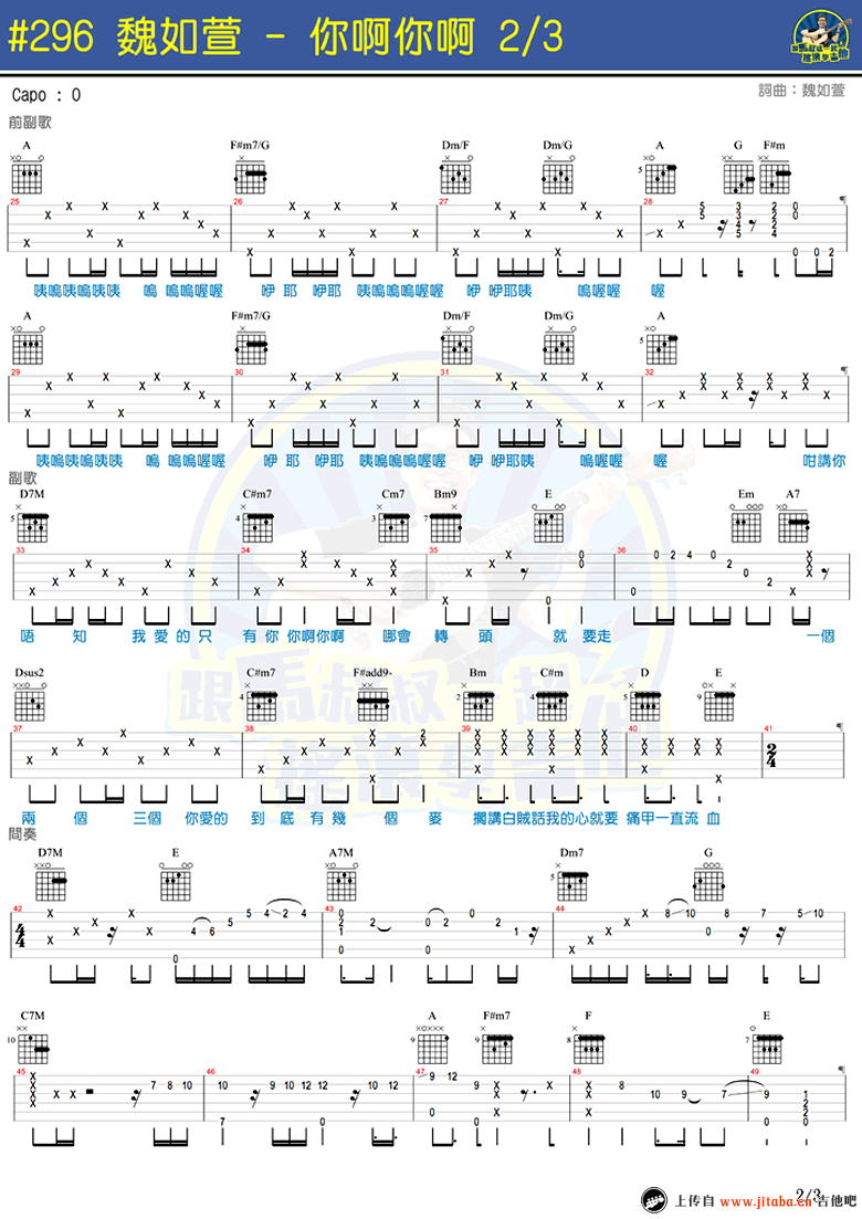 你啊你啊吉他谱 - 魏如萱 - 吉他弹唱谱