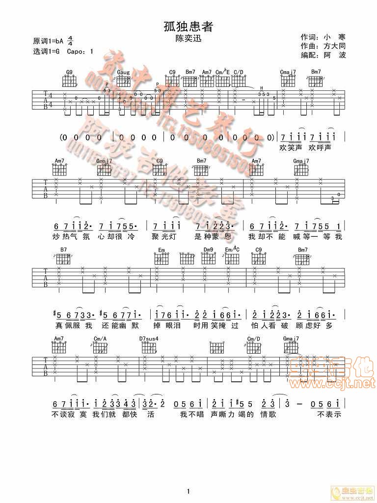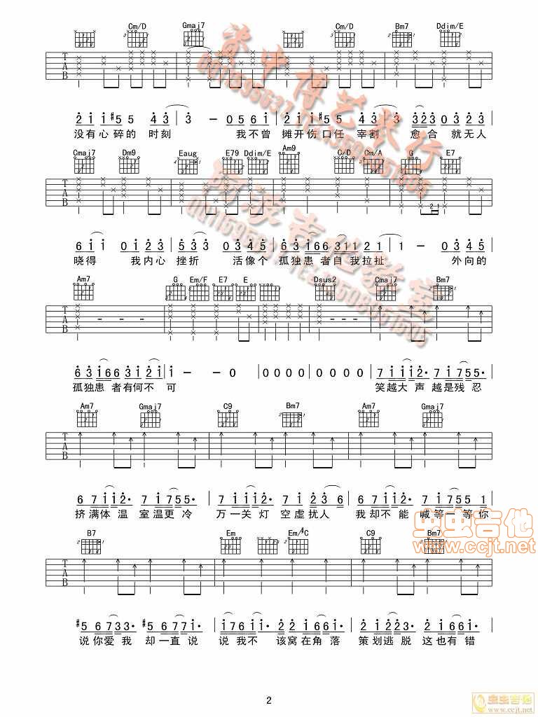 当前位置:琴谱网>吉他弹唱>孤独患者