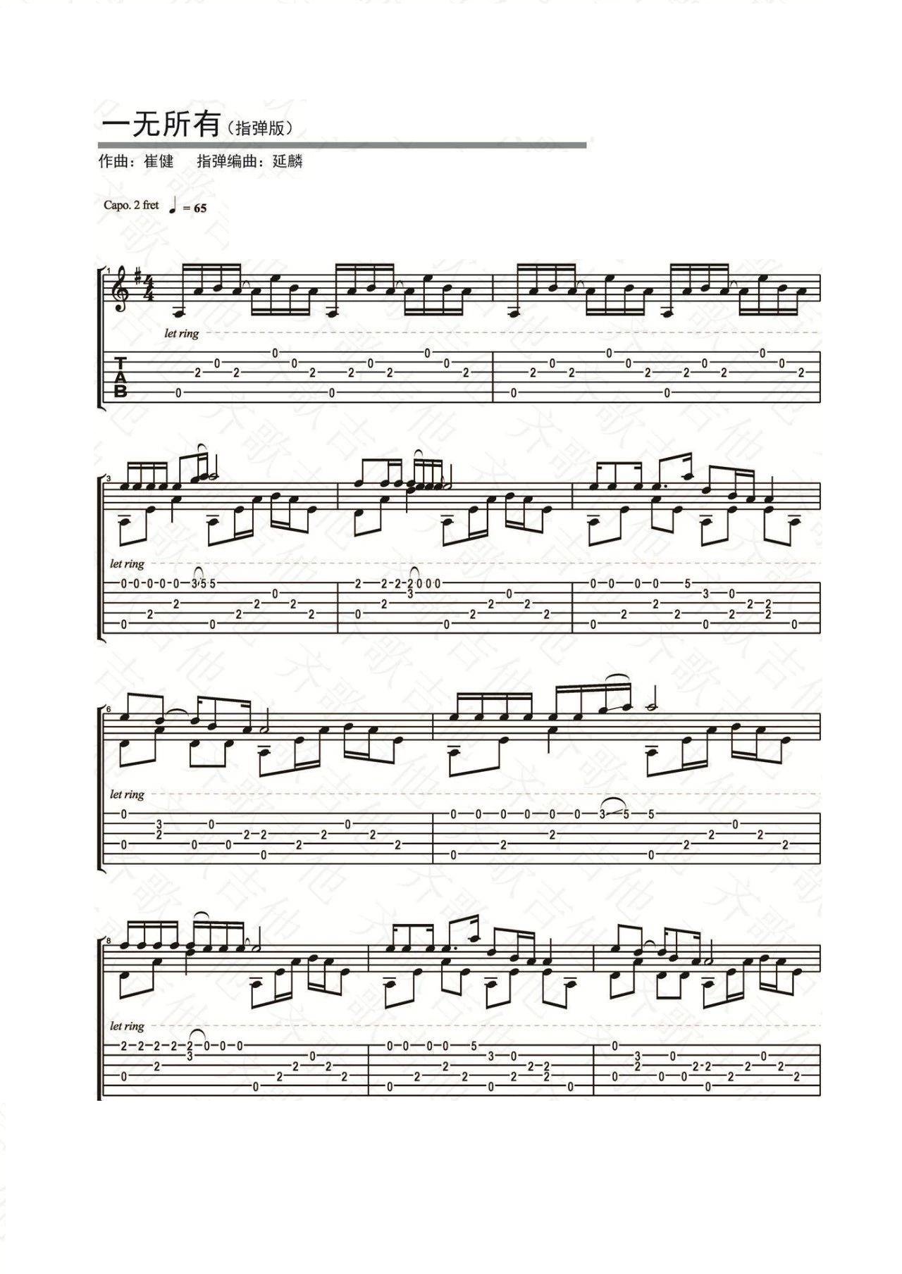 曲谱介绍: 一无所有《一无所有崔健》吉他独奏谱,共有4张高清图谱。