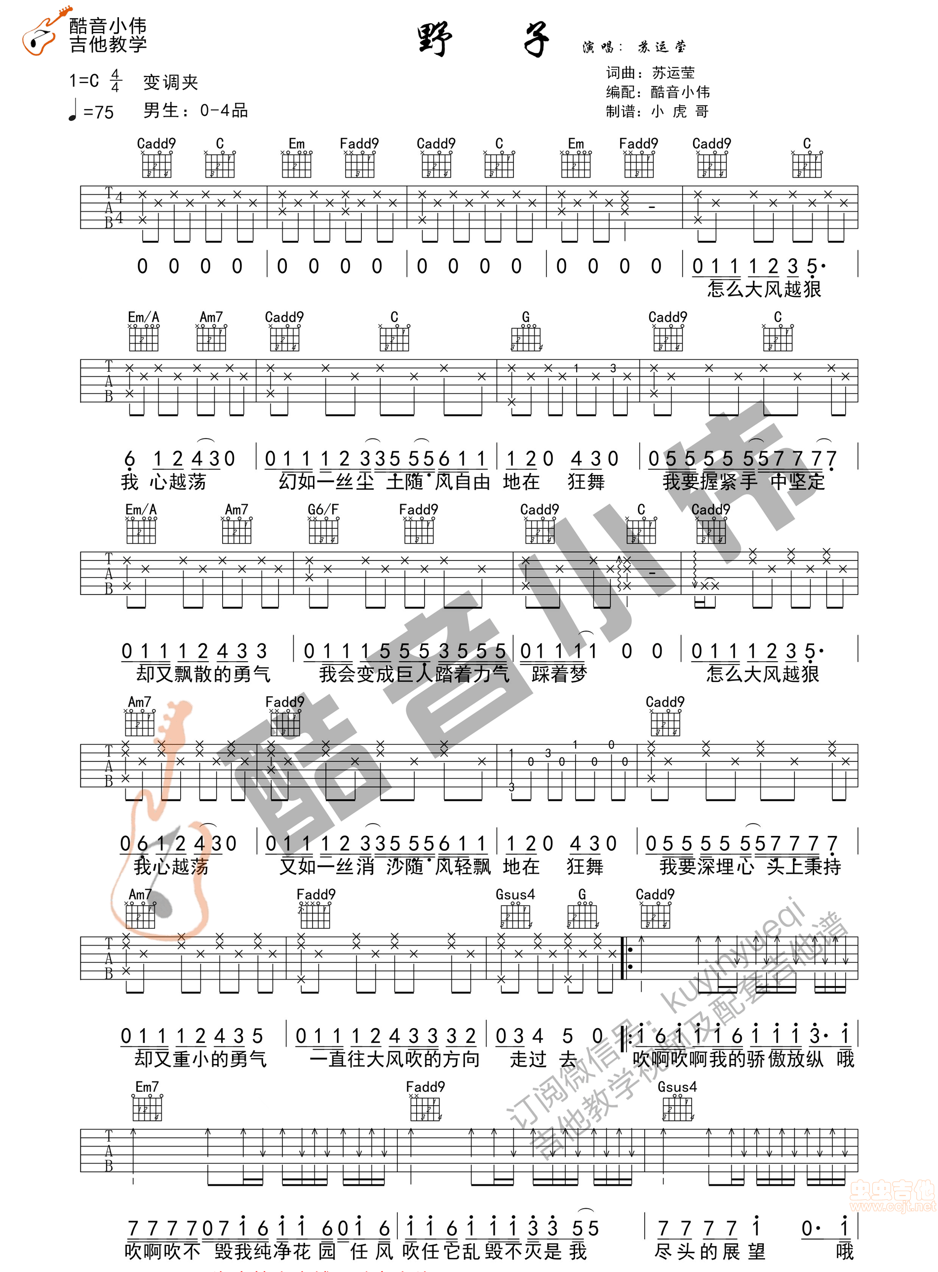 当前位置:琴谱网>吉他弹唱>野子 苏运莹 C调图片