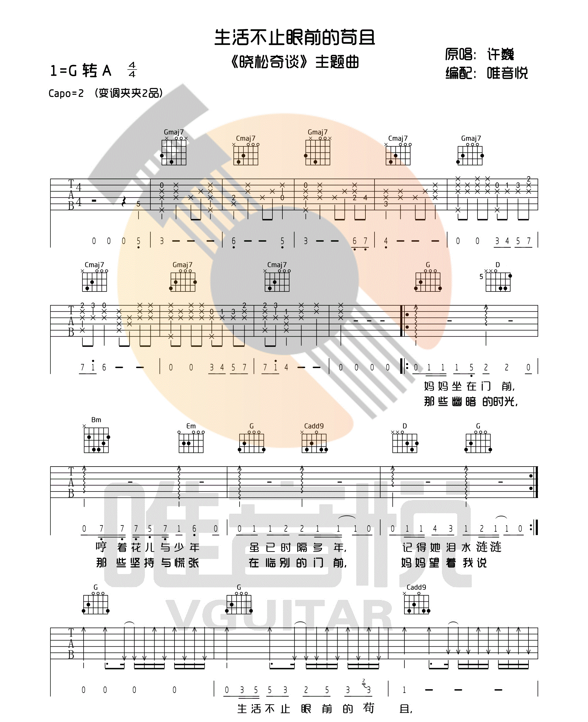 当前位置:琴谱网>吉他弹唱>生活不止眼前的苟且 许巍 G调图片