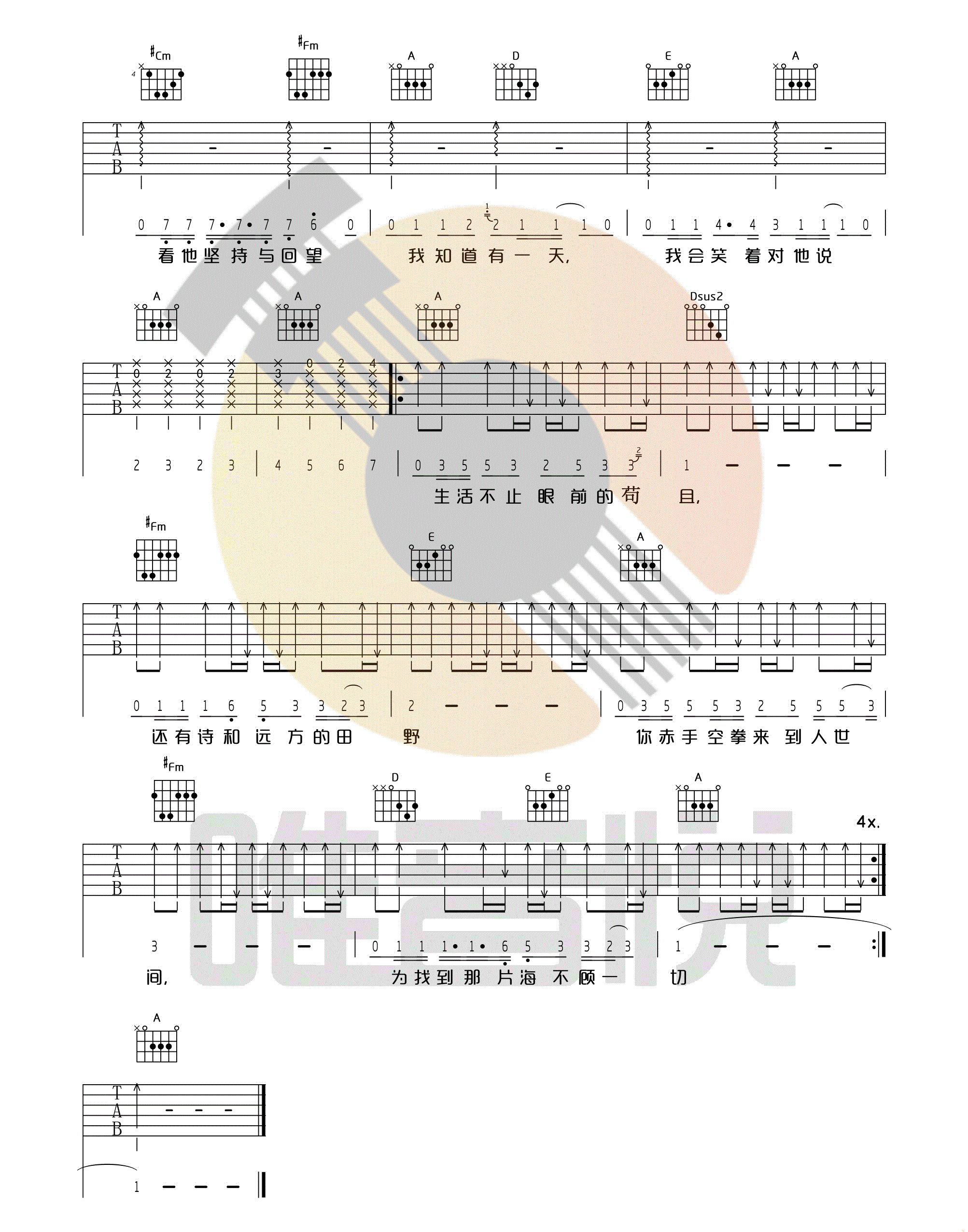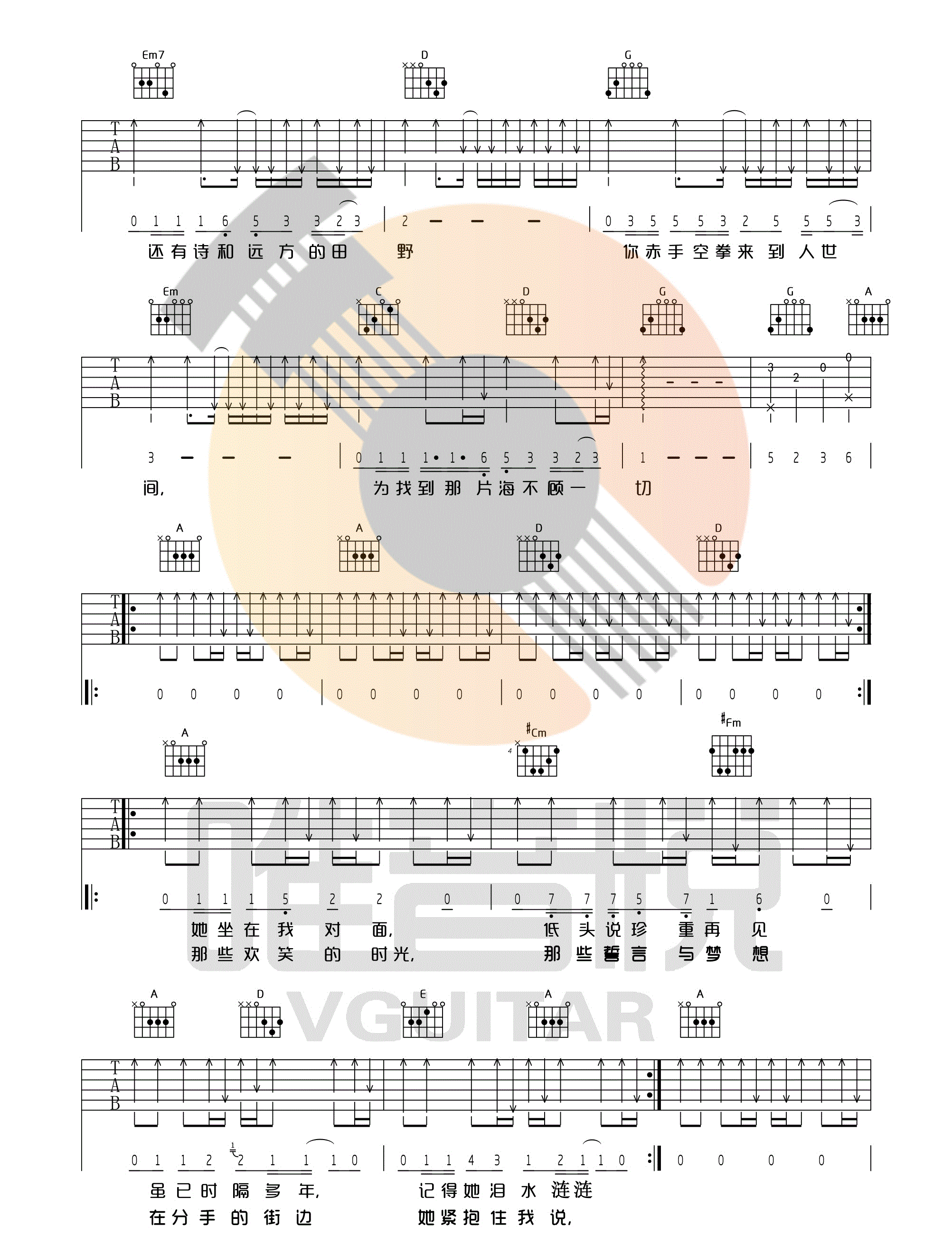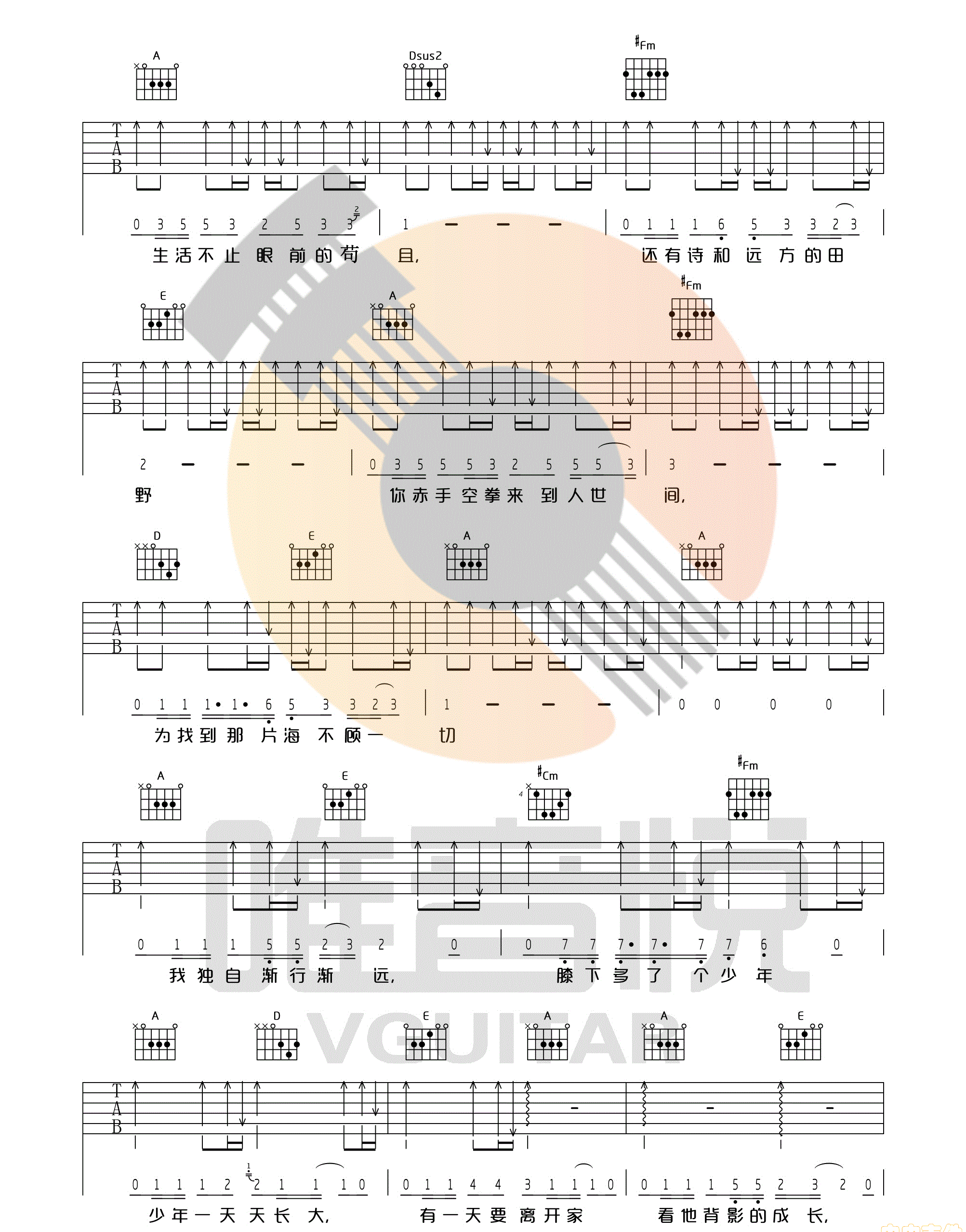生活不止眼前的苟且 许巍 G调图片吉他谱 - 生活不止眼前的苟且 - G调吉他弹唱谱