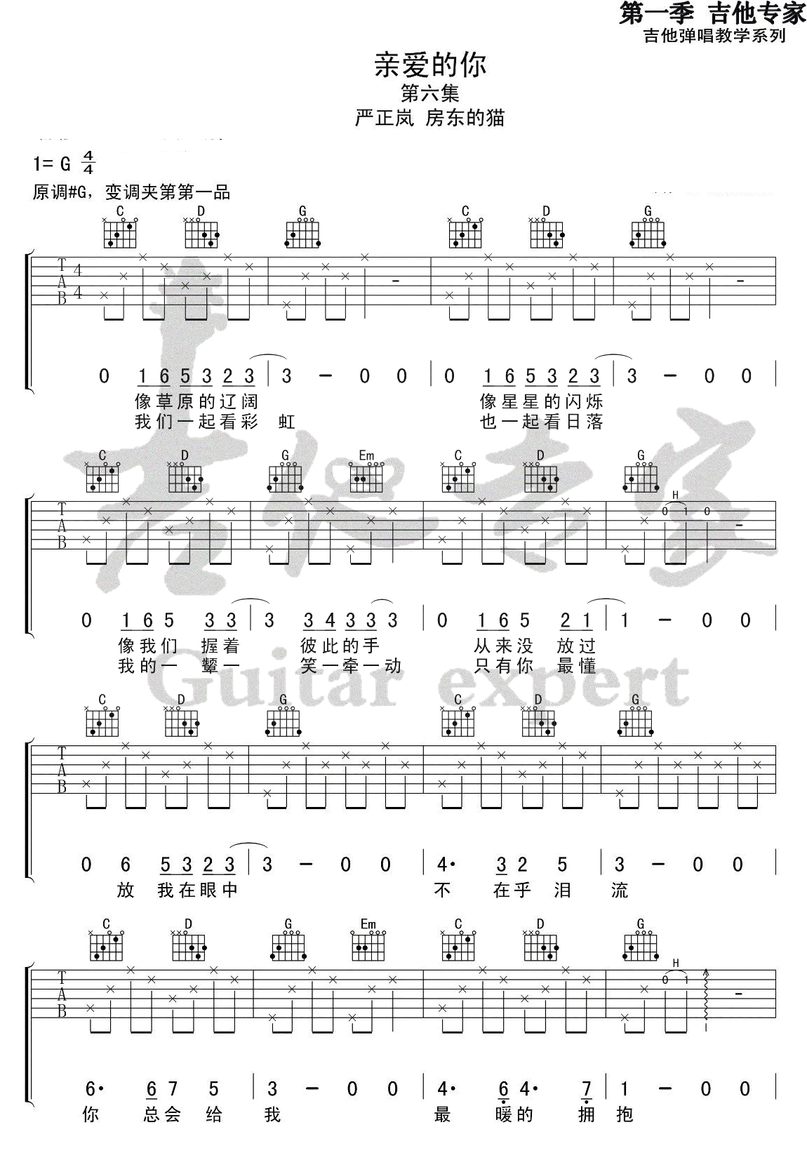 亲爱的你 严正岚/房东的猫 图片吉他谱 - 亲爱的你 - 吉他弹唱谱