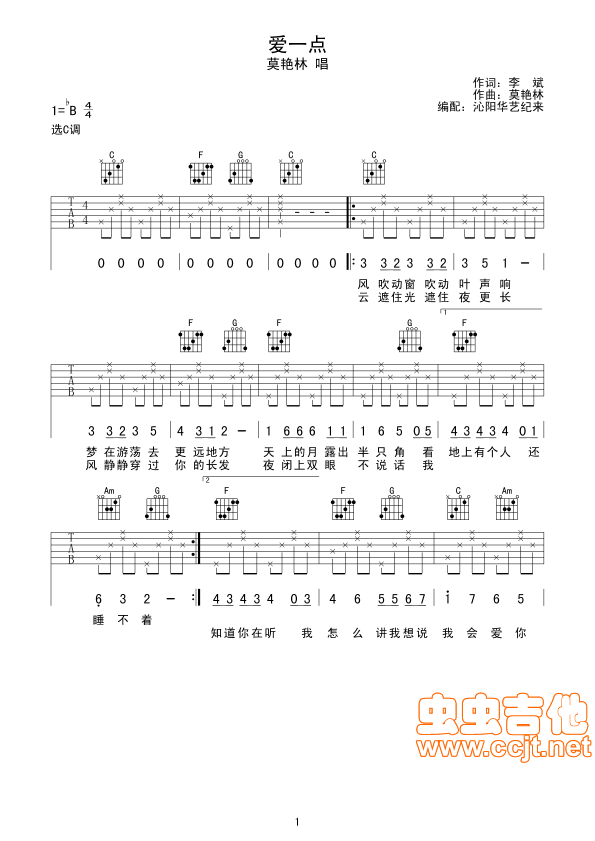 曲谱介绍: 《爱一点》吉他弹唱谱,共有2张高清图谱,免翻页排版设计。