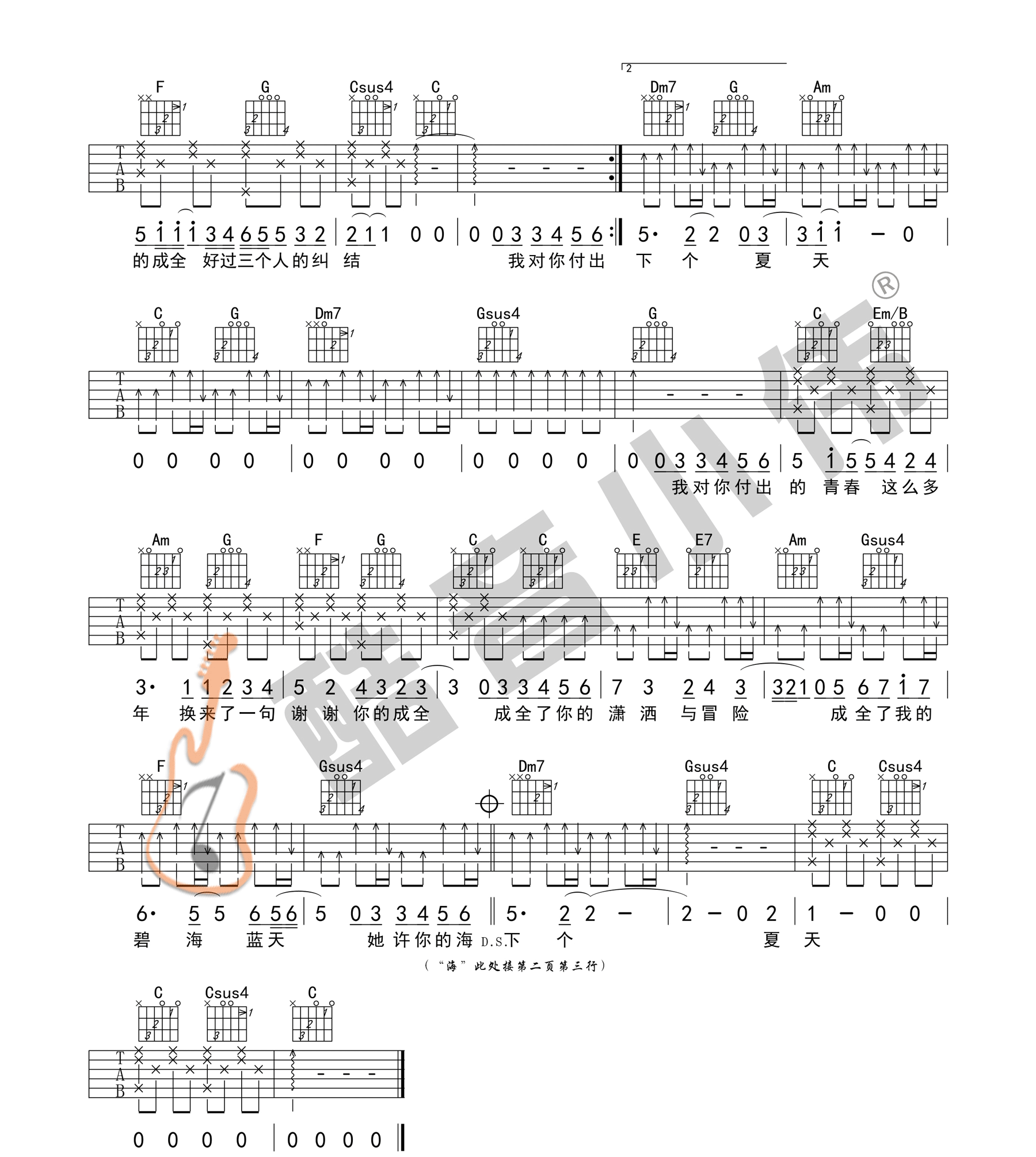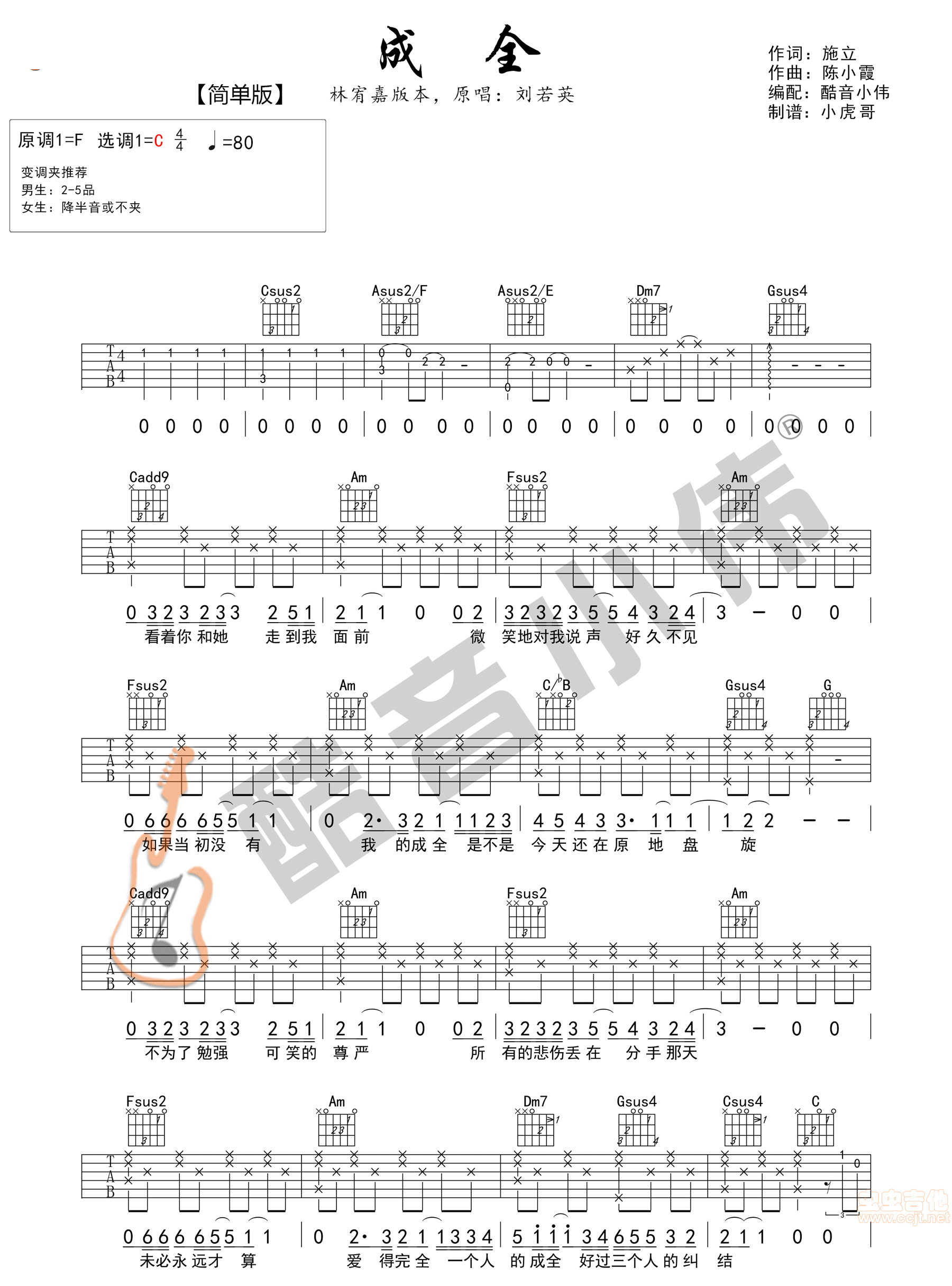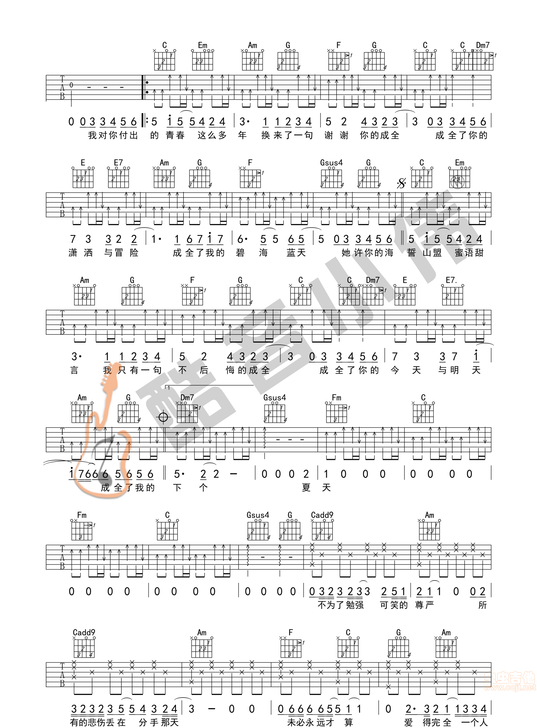 成全 C调简单版 高清图片吉他谱 - 成全 - C调吉他弹唱谱