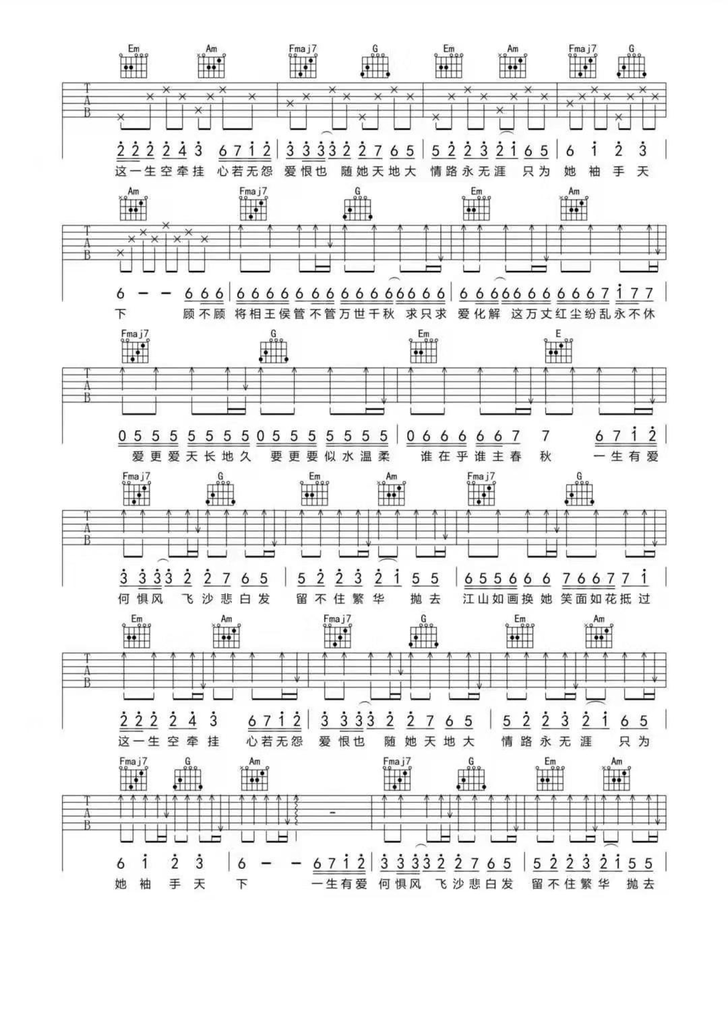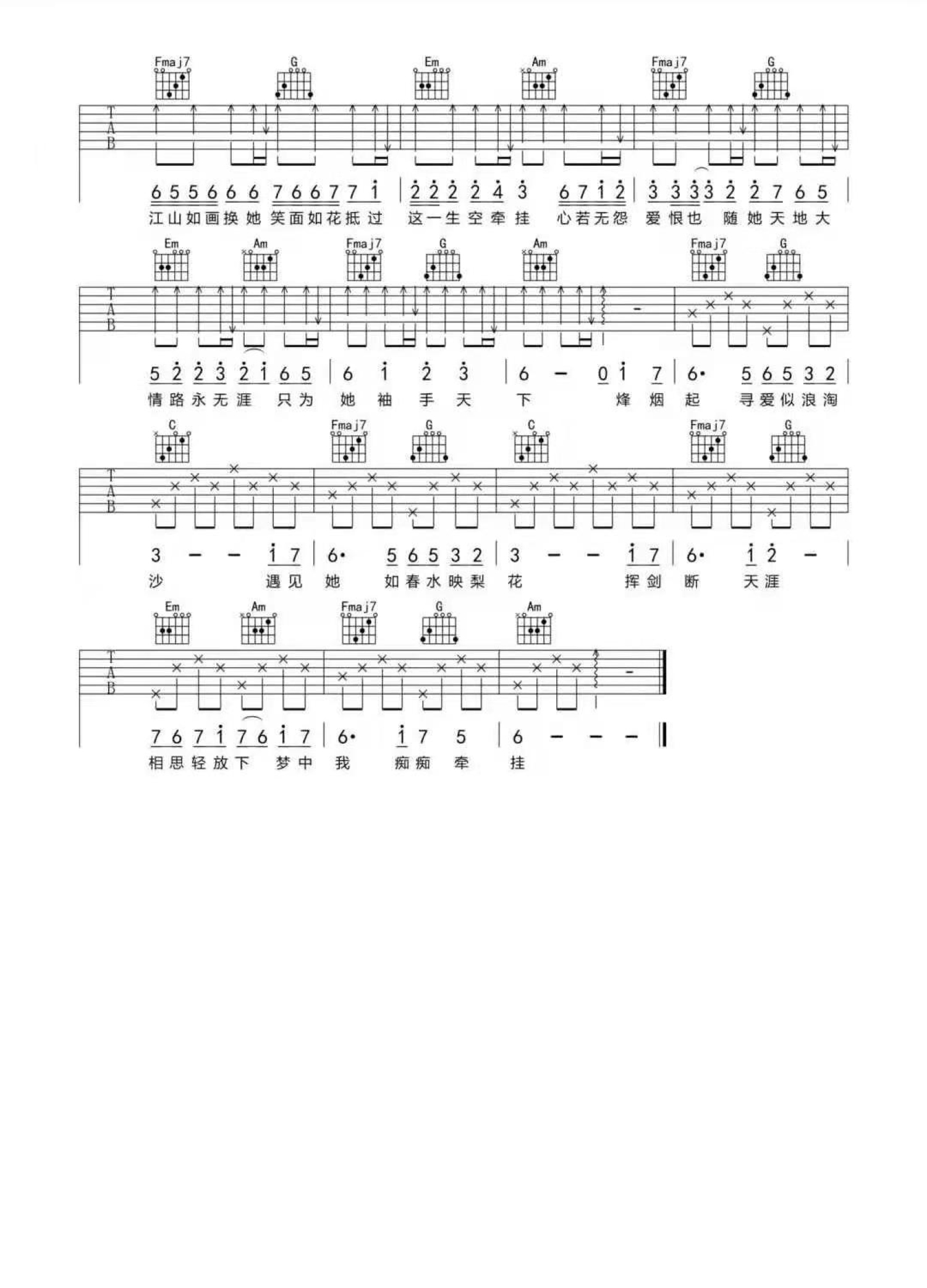 当前位置:琴谱网>吉他弹唱>天下