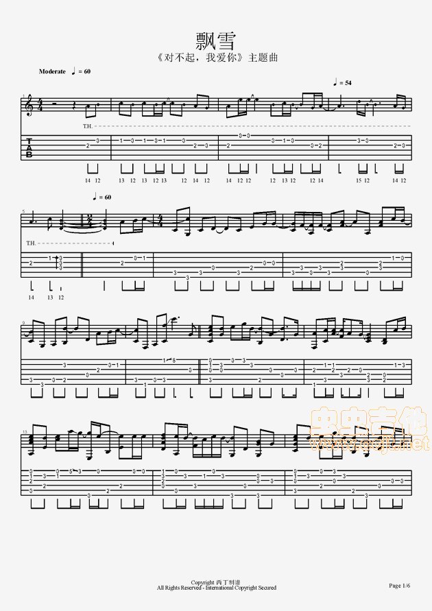 曲谱介绍: 《飘雪》吉他弹唱谱,共有6张高清图谱。