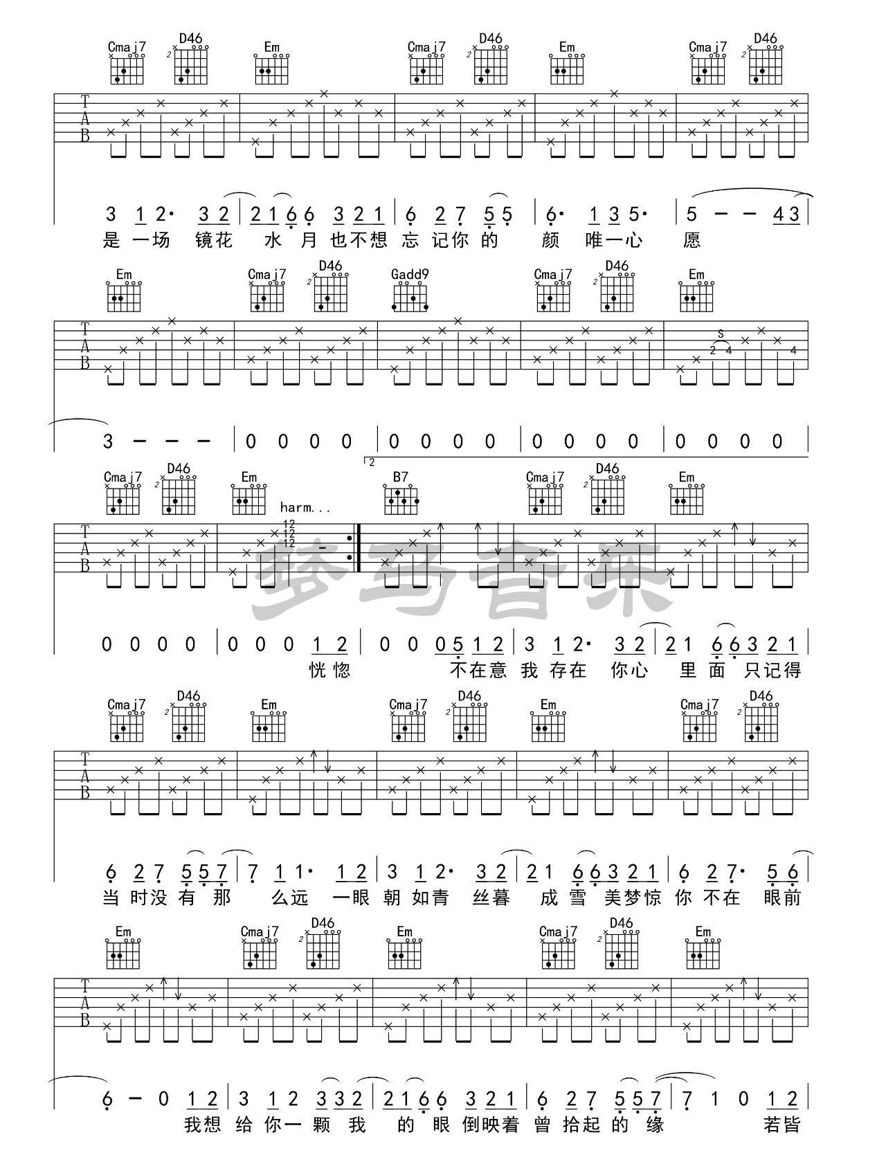 当前位置:琴谱网>吉他弹唱>椿 沈以诚 G调图片标准版