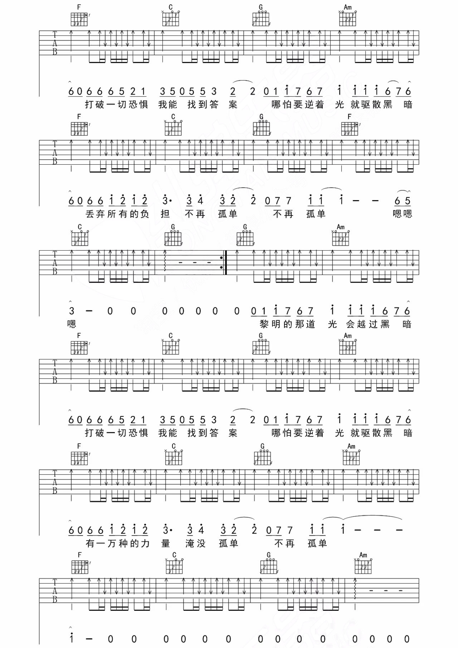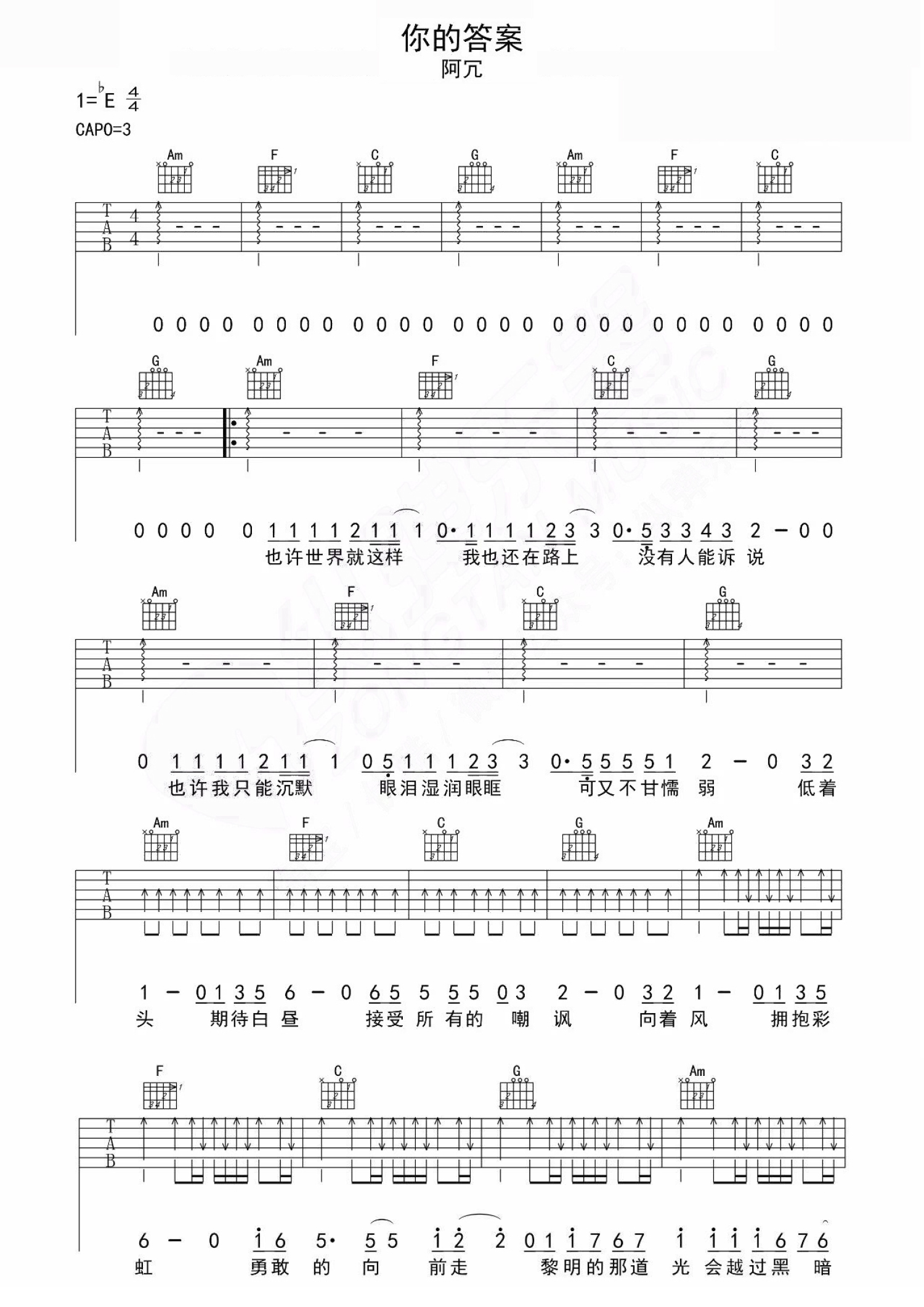 曲谱介绍: 阿冗《你的答案》吉他谱_C调吉他弹唱谱