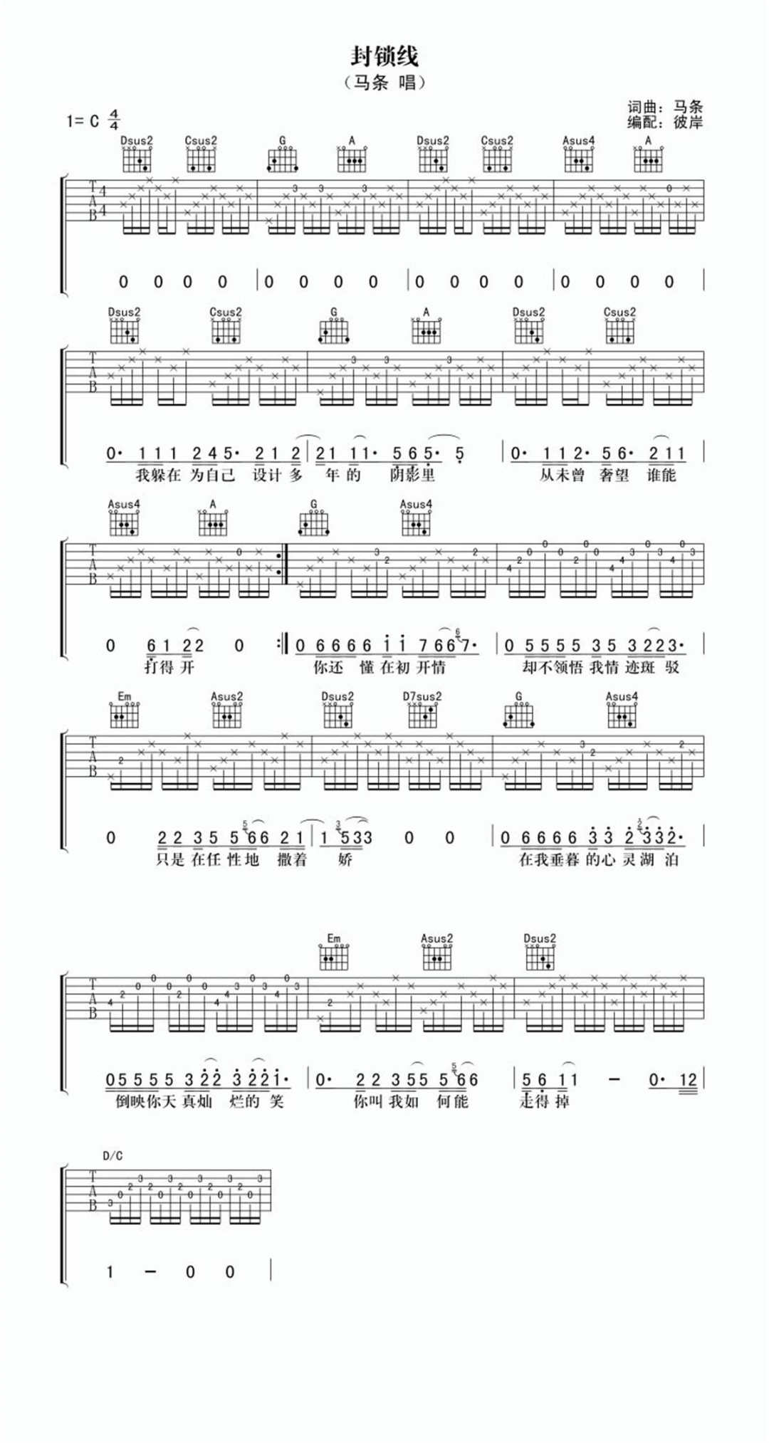 封锁线吉他谱 - 马条 - C调吉他弹唱谱 - 原版