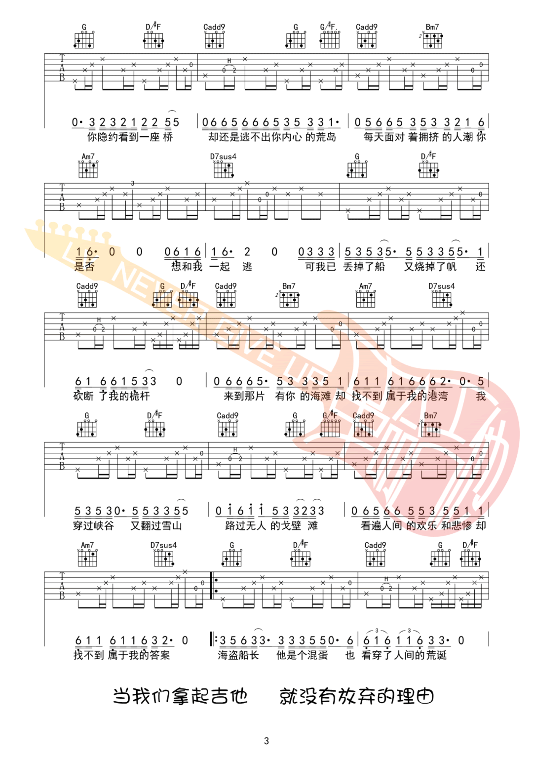 当前位置:琴谱网>吉他弹唱>海盗船长2.0