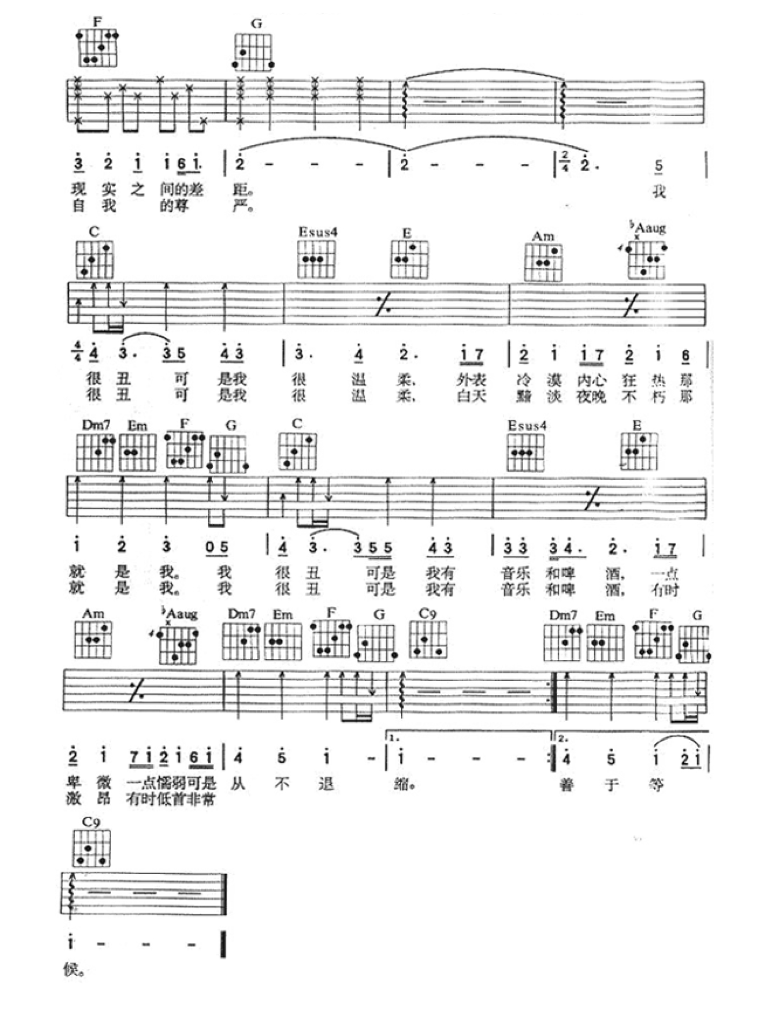 当前位置:琴谱网>吉他弹唱>我很丑可是我很温柔