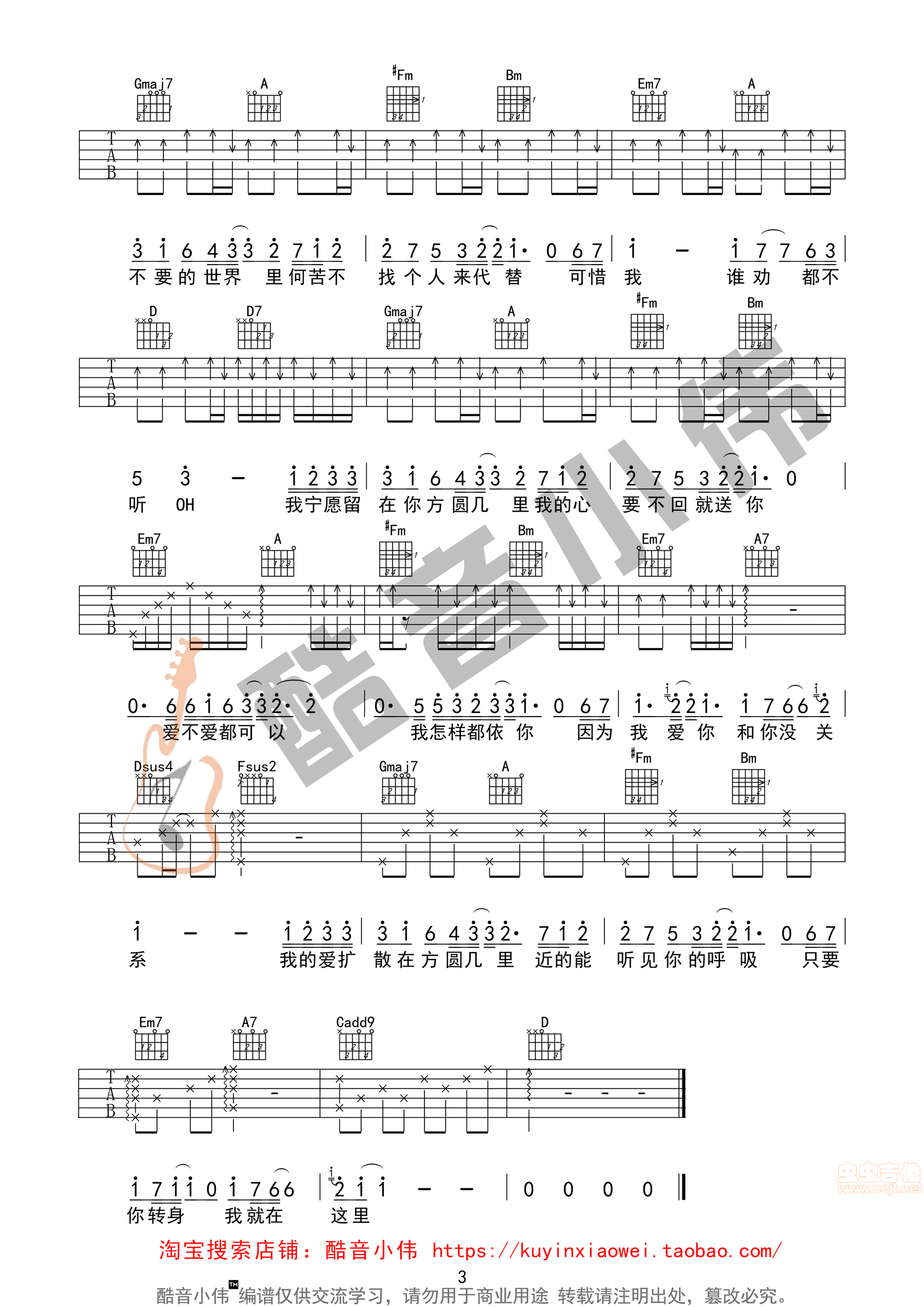 方圆几里吉他谱 - 全网首发 - 吉他弹唱谱 - 原版