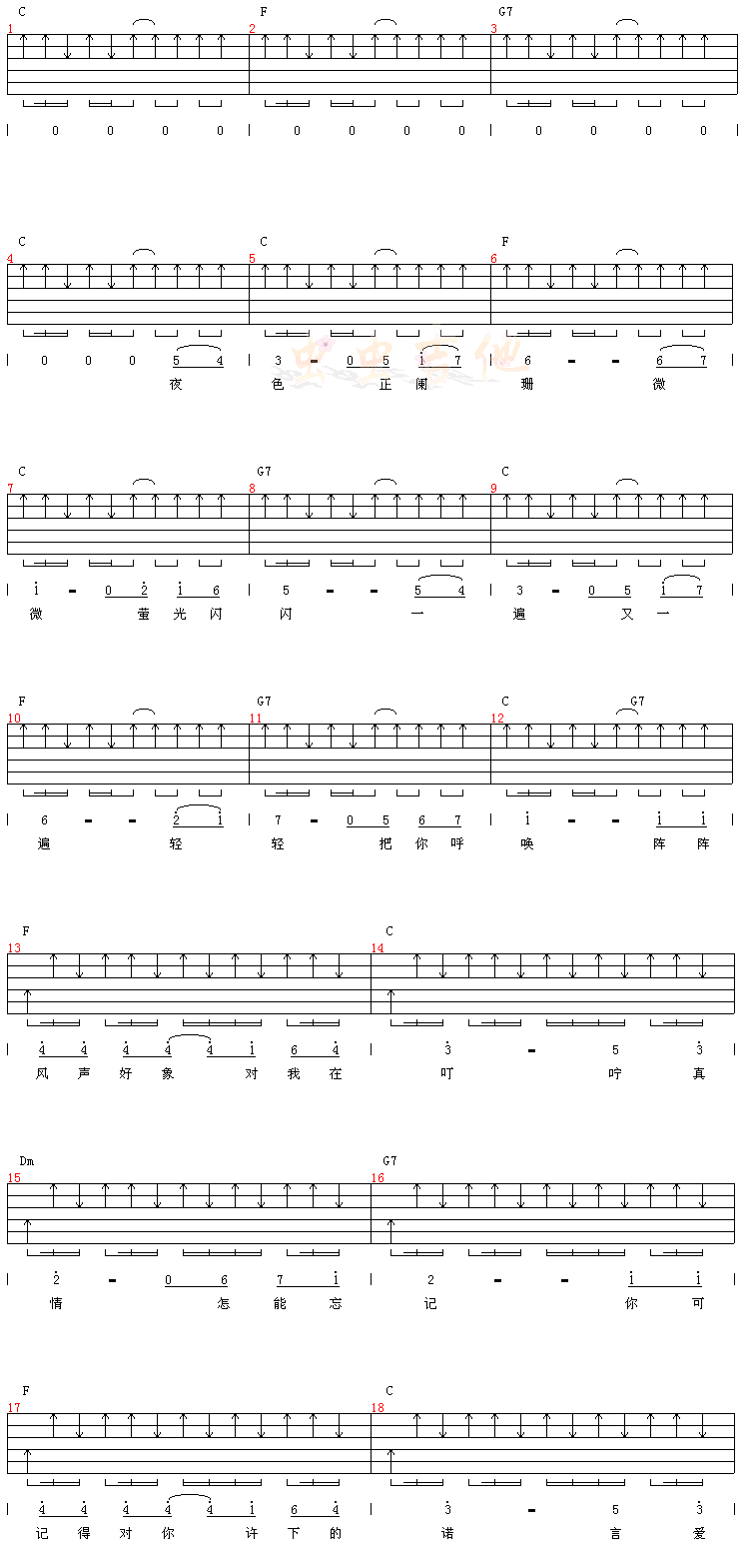 夜色吉他谱 - 吉他弹唱谱