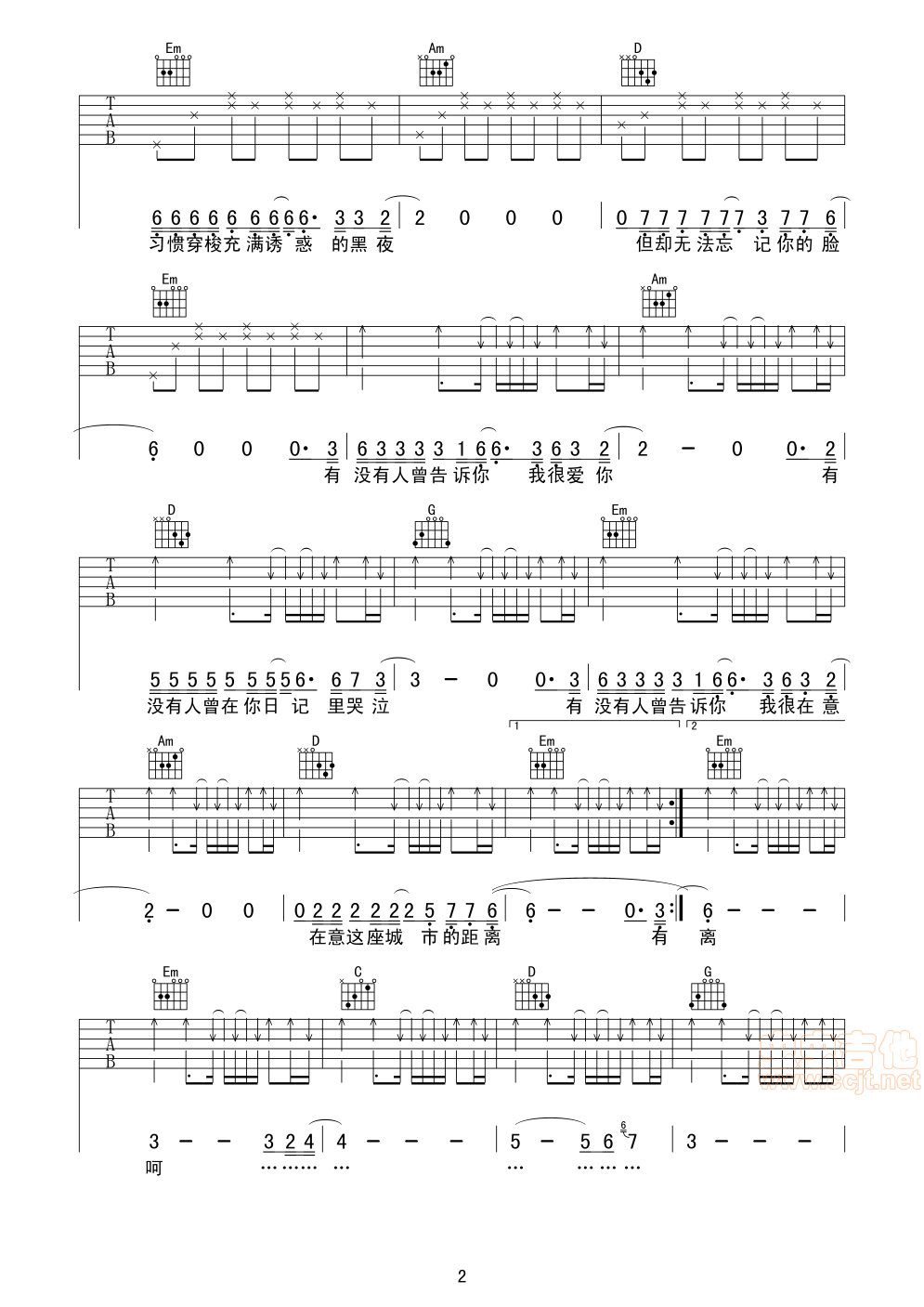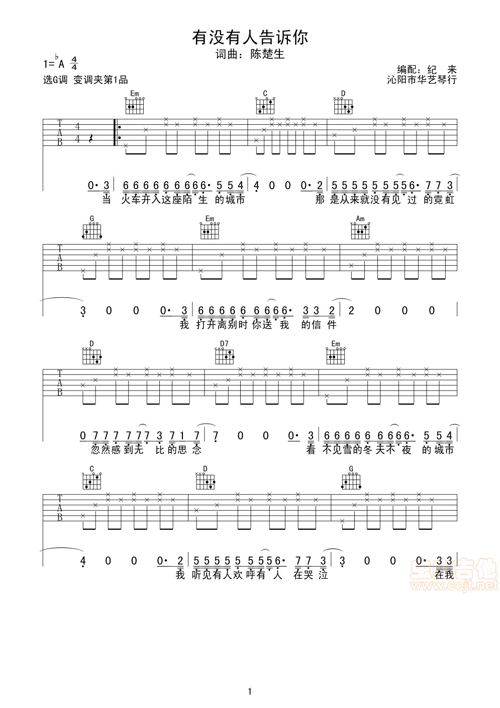 当前位置:琴谱网>吉他弹唱>有没有人告诉你