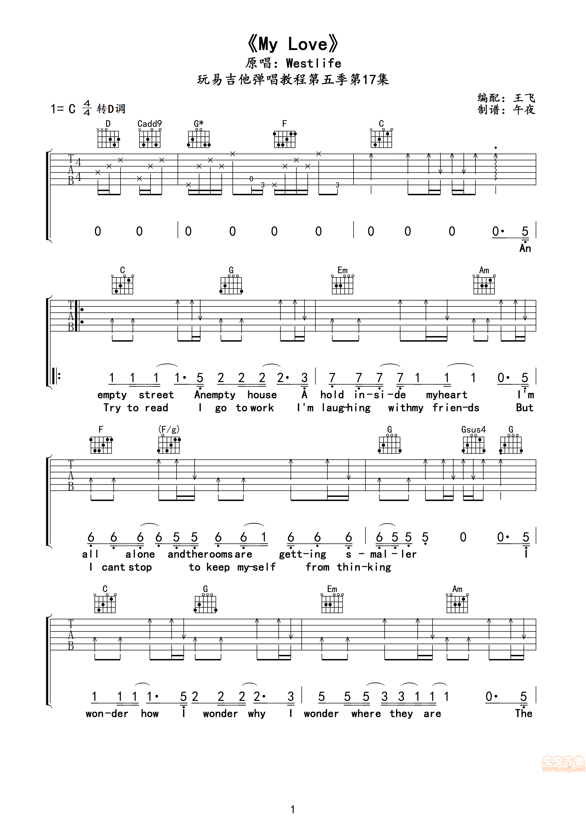 曲谱介绍: 《MyLove》吉他弹唱谱,共有3张高清图谱。