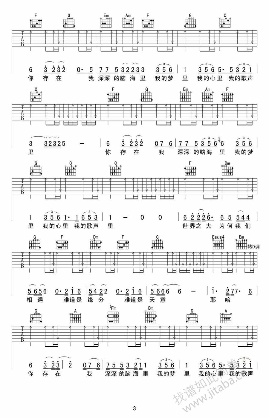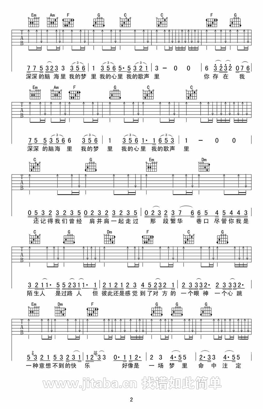 当前位置:琴谱网>吉他弹唱>我的歌声里