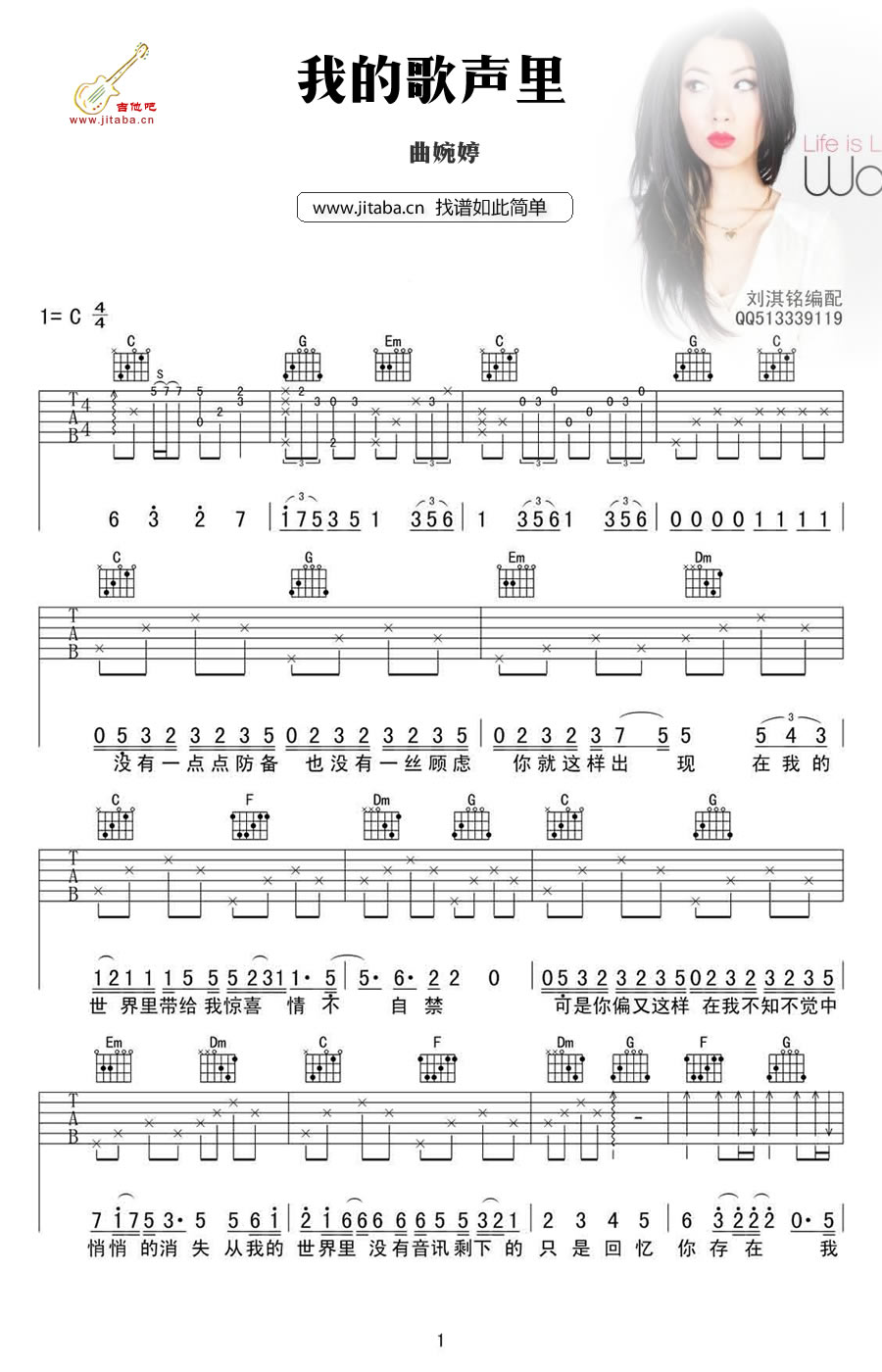 我的歌声里吉他谱 - 曲婉婷 - C调吉他弹唱谱