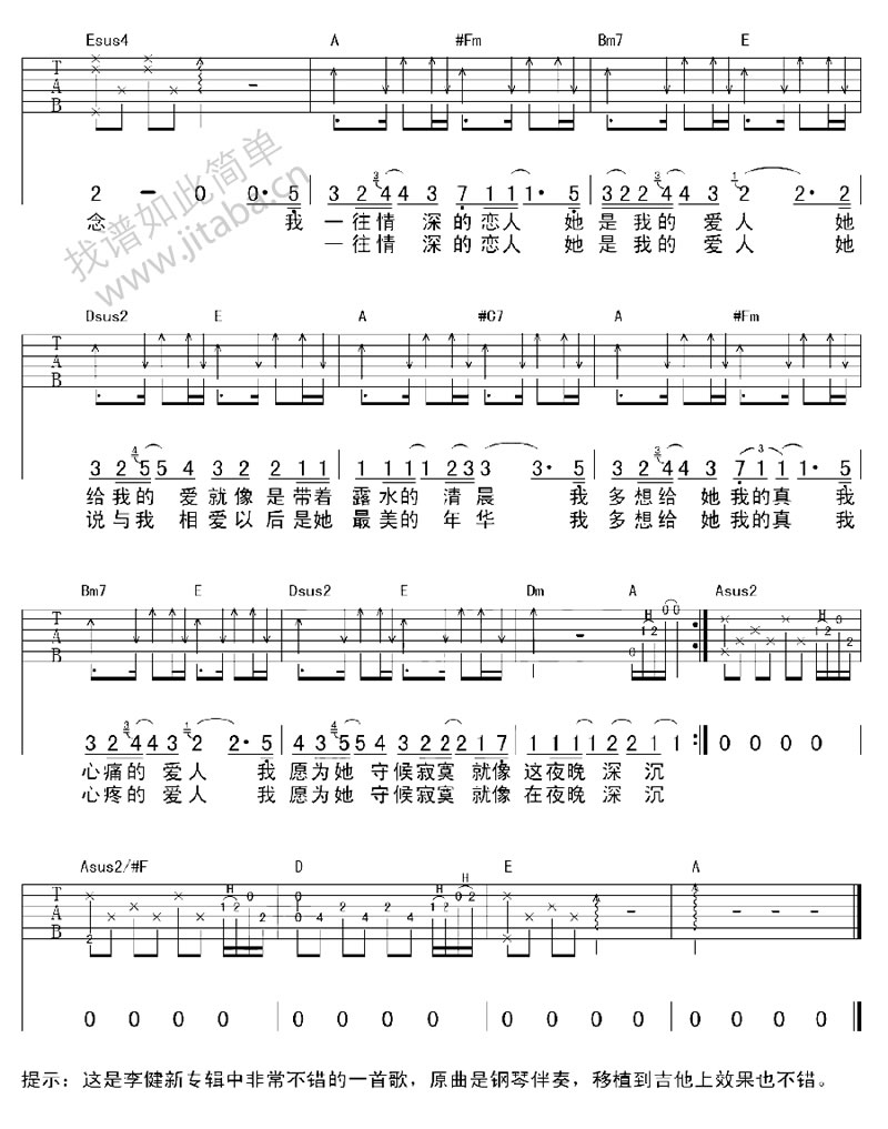 一往情深的恋人吉他谱 - 李健 - 吉他弹唱谱