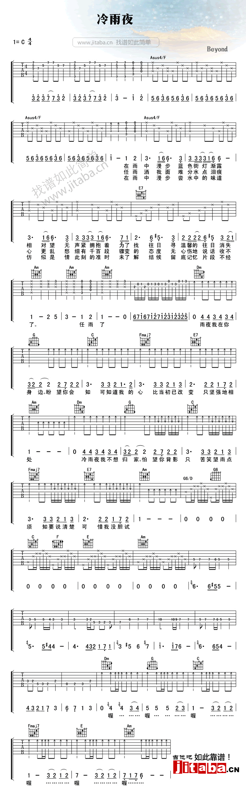 冷雨夜吉他谱 - Beyond - 吉他弹唱谱