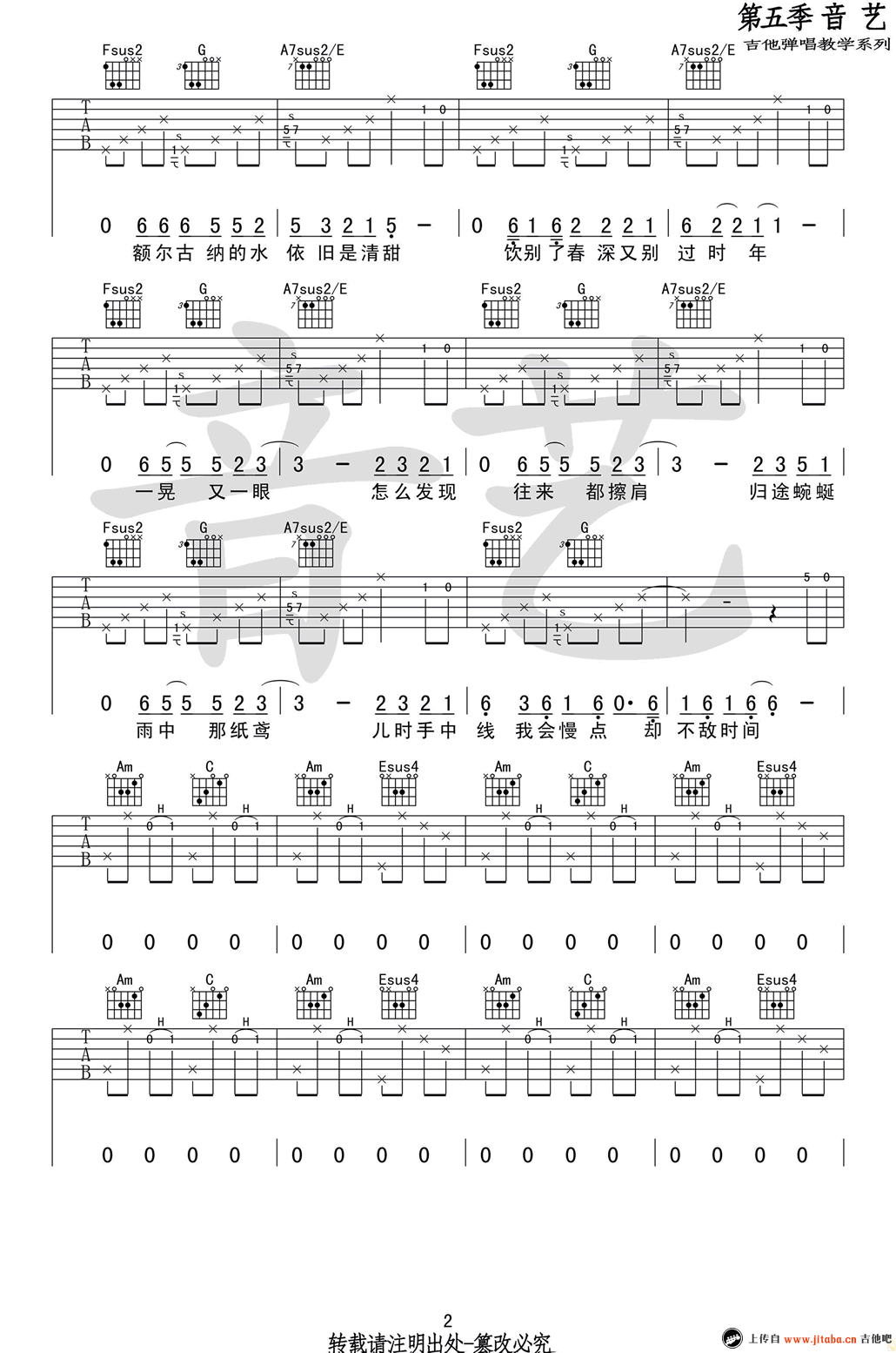 当前位置:琴谱网>吉他弹唱>额尔古纳