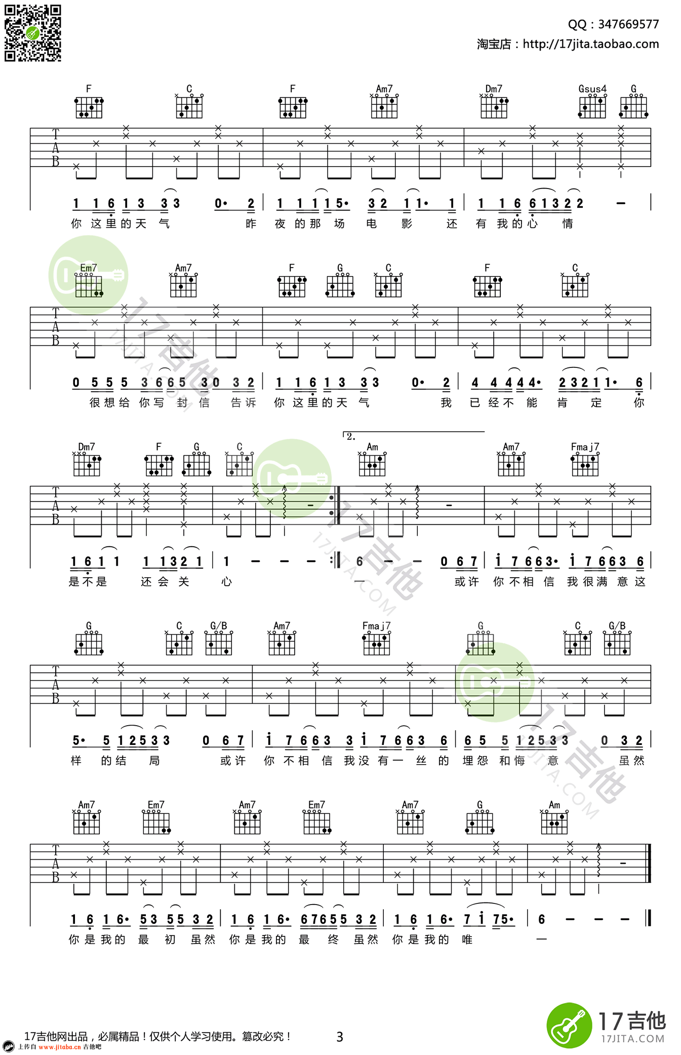当前位置:琴谱网>吉他弹唱>你是我的唯一