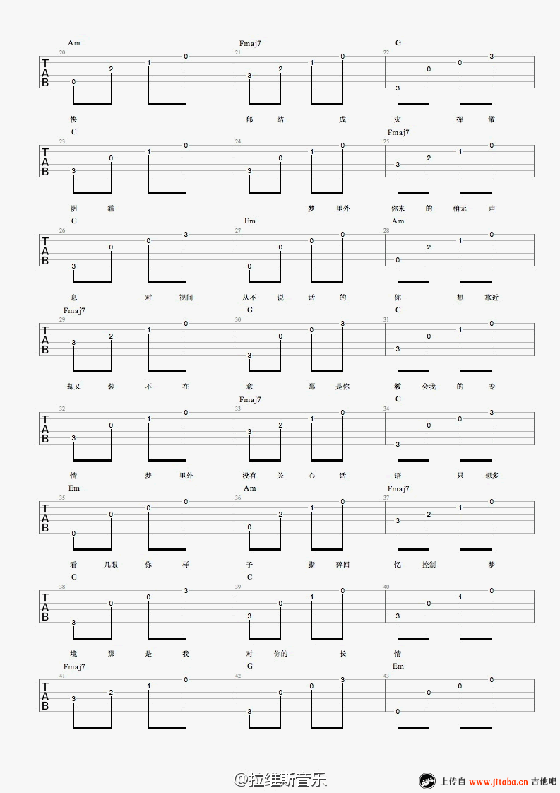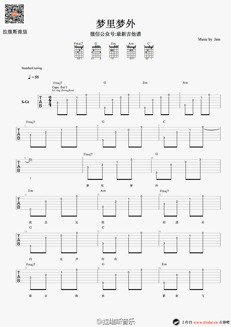 梦里梦外吉他谱 - JAM - 吉他弹唱谱