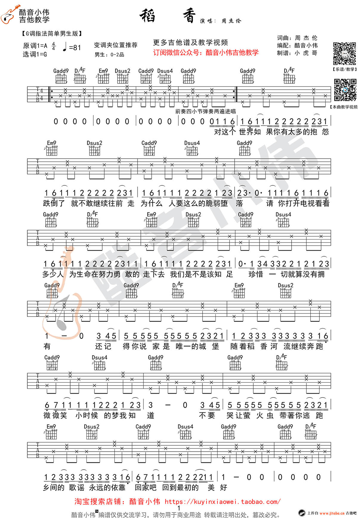 稻香吉他谱 - 周杰伦 - G调吉他弹唱谱